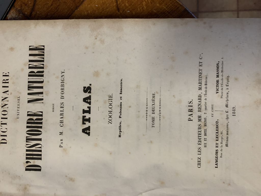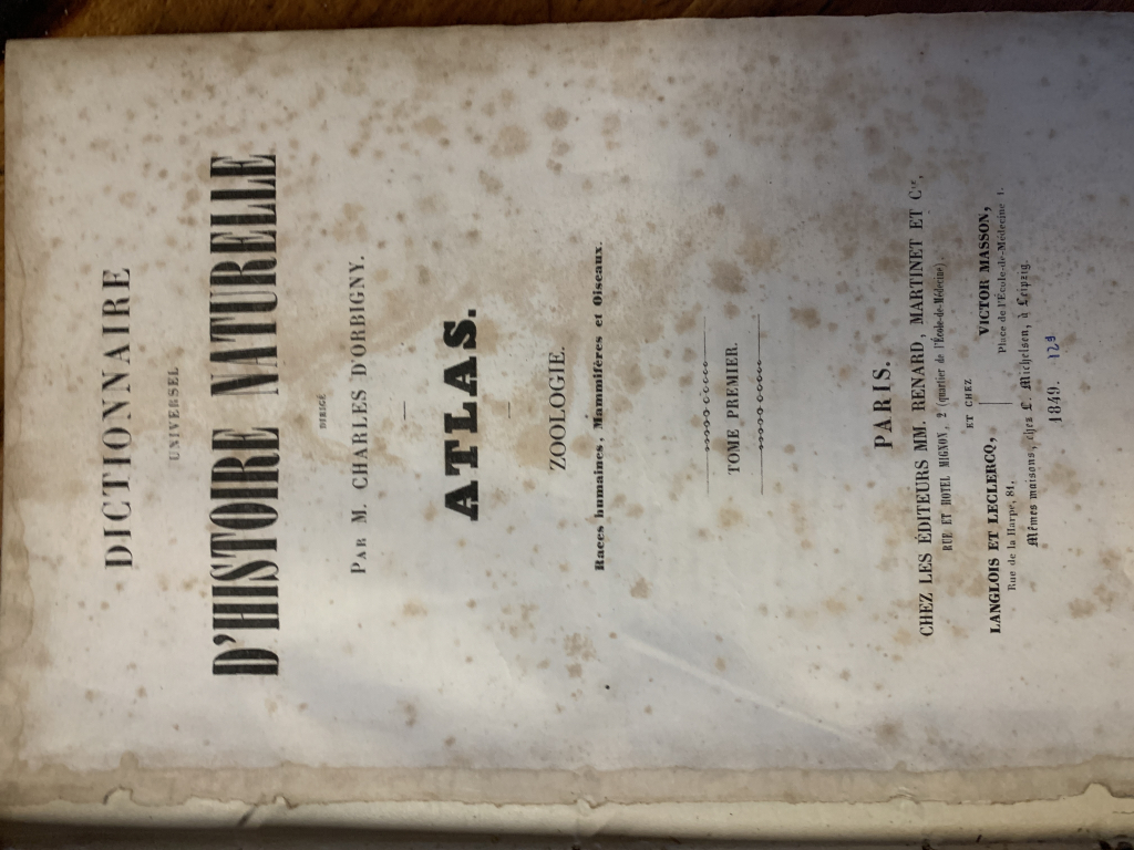 France estimations a reçu la demande d'estimation suivante intitulée par le déposant : Atlas universel, histoire naturelle, Charles d’Orbigny, 18149.