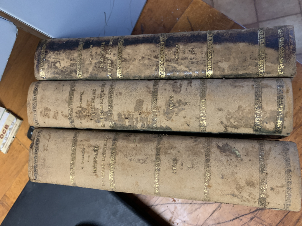 "En trois volumes, le dictionnaire d’histoire naturelle Par Charles d’Orbigny. 1849 Chez les éditeurs MM RENARD MARTINET ET Cie Volume numéro 1. Race humaine, mammifères et oiseau. Volume numéro deux. Reptiles, poisson et insectes. Volume numéro trois. Zoologie et botanique Nombreuses planche, couleur"