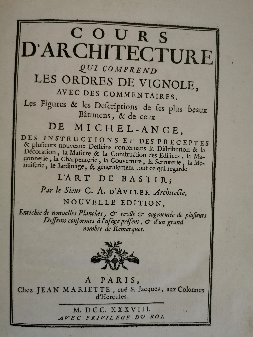 France estimations a reçu la demande d'estimation suivante intitulée par le déposant : Cours d'architecture qui comprend les ordres de Vignole... etc..