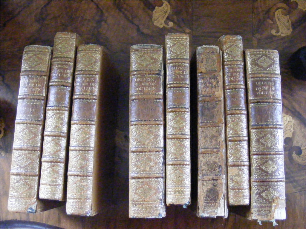 "Oeuvres de Mr. de Voltaire Volumes 1, 2, 3, 5, 6, 7, 8 et 9 Editions : Dresde 1748 ( volumes 1 à 8) & Dresde 1750 ( volume 9 ) chez George Conrad Walther * reliure du volume 7 en mauvais état"