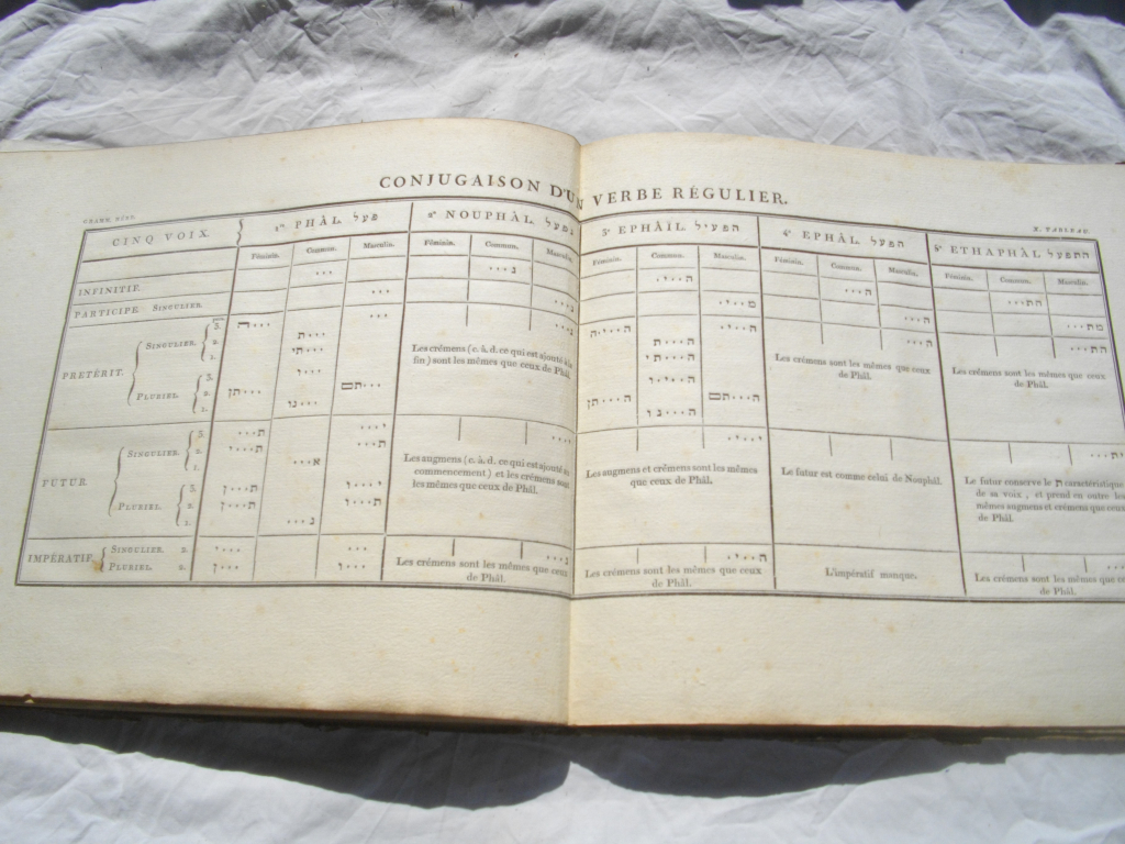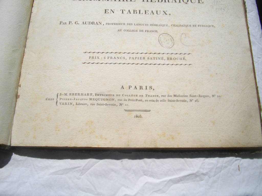 France estimations a reçu la demande d'estimation suivante intitulée par le déposant : grammaire hébraique en tableaux.