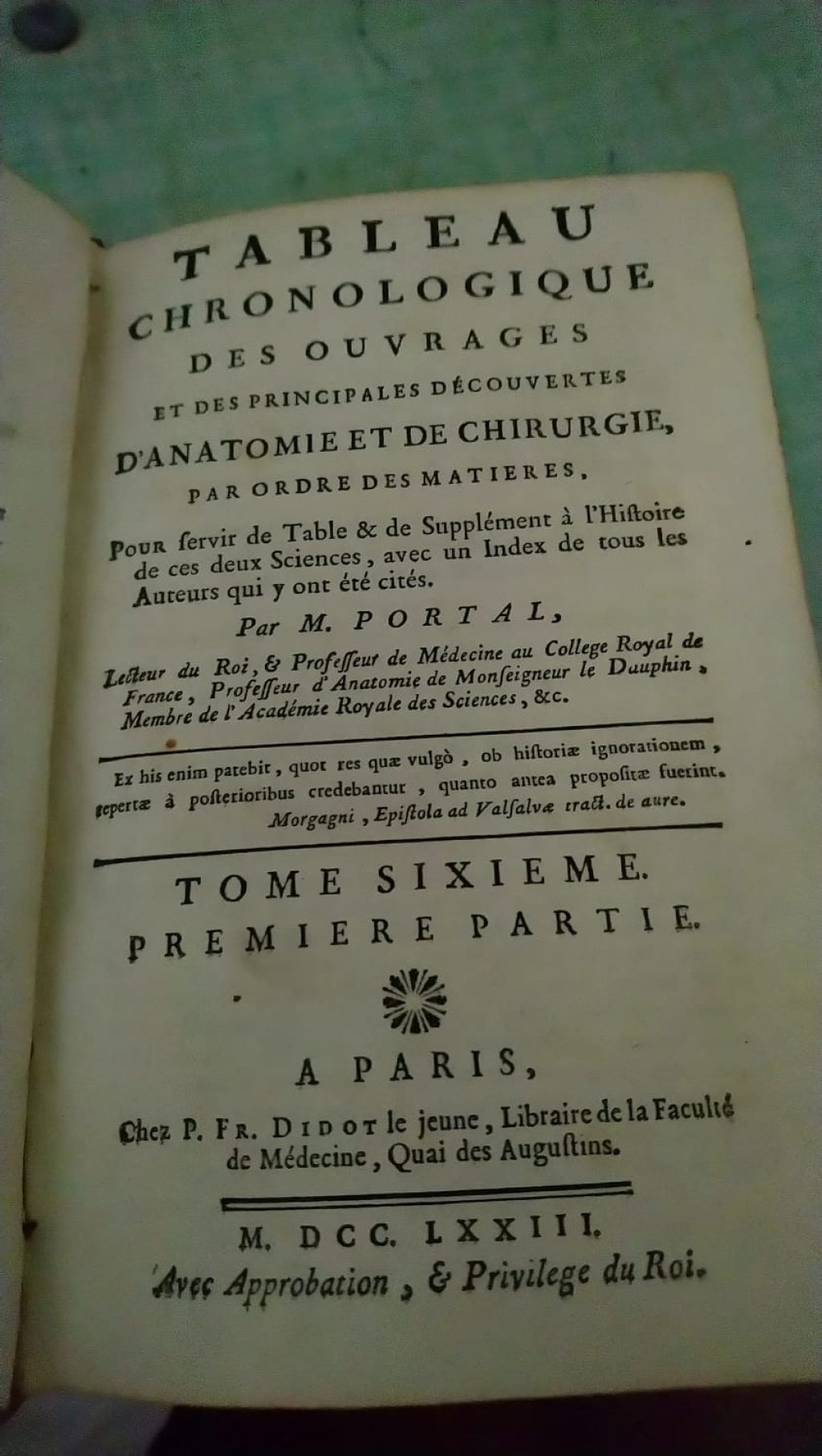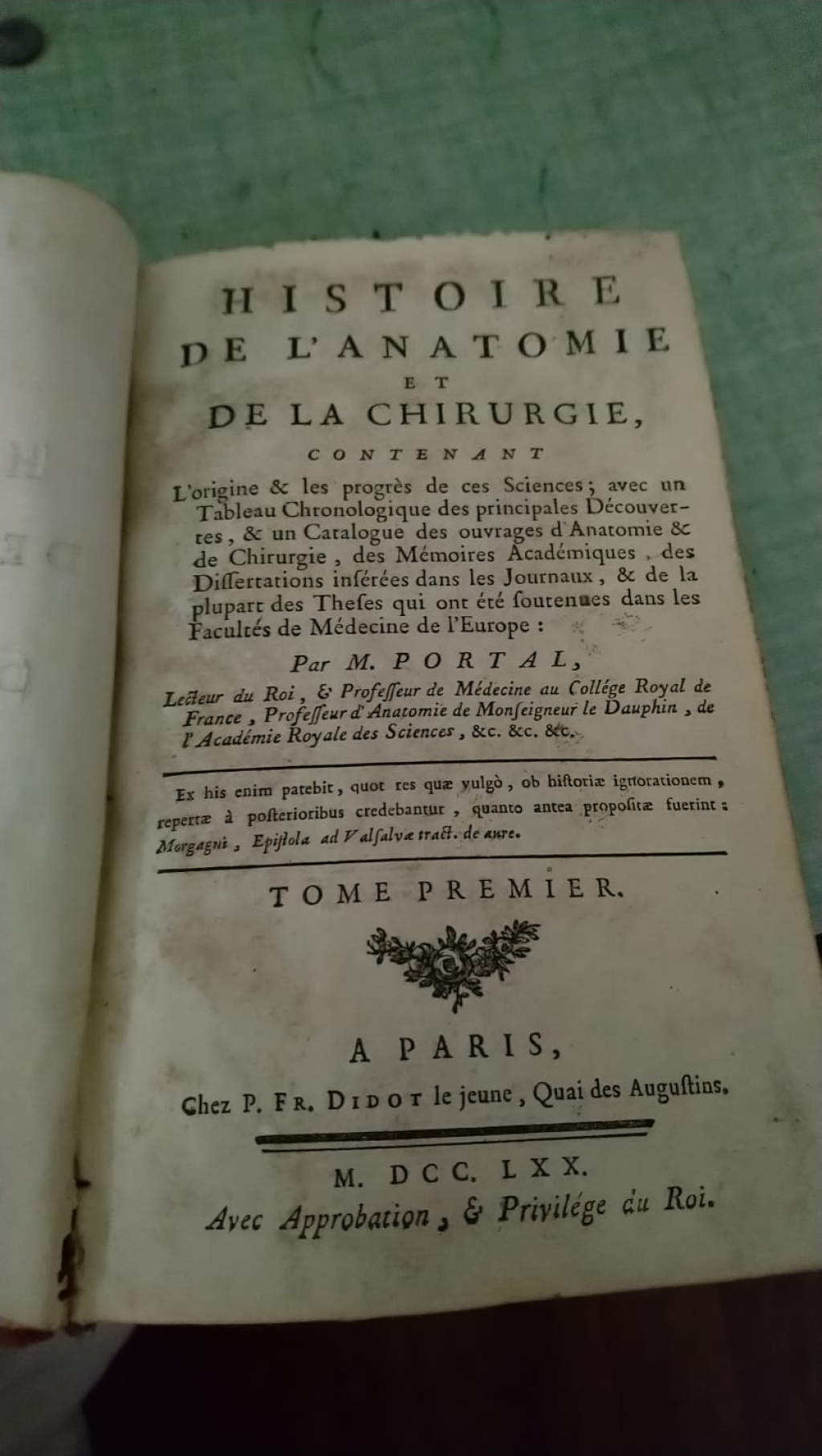 "PORTAL (lecteur du roi, professeur de médecine au collège royal de France, professeur d’anatomie de Monseigneur le Dauphin, de l’Académie royale des sciences, etc.), Histoire de l’anatomie et de la chirurgie, t. 1 à 6, Paris, P. Fr. Didot le jeune, MDCCLXX (1770) 6 volumes Les différents tomes sont dans des états variables, mais plutôt mal conservés : marques d'usure La collection est complète (6 tomes) Ils proviennent de la bibliothèque de mon grand-père, le Dr et anthropologue Fiz Antonio Fernandez. Je possède également d'autres ouvrages, plus ou moins ancien, en français, espagnol et un atlas italien (1890). Les états de conservation sont là aussi variables et plus ou moins bons. PRESCOTT William H., Histoire de la conquête du Mexique, avec un tableau préliminaire de l’ancienne civilisation mexicaine et la vie de Fernand Cortés, trad. PICHOT Amédée, Paris, Firmin Didot Frères, 1846. 1vol/3 Couverture décollée COLLECTIF, Nouvelle pratique médico-chirurgicale illustrée. Tome 7 : Pouls – Strophantus, Paris, Masson et Cie éditeurs, 1911 ROLLESTON Humphry, L’âge, la vie, la maladie, Paris, Gaston Doin et Cie, 1930 HERING C. (doctor), Medicina Homeopática Doméstica ó Guia De Las Familias, trad. ALVAREZ DE ARAUJO Y CUELLAR Angel, Madrid, Carlos Bailly-bailliere, 1875 Avec dédicace de Victor N. PENSA COLECTIV0, Biblioteca escojida de medicina y cirujia o coleccion de las mejores obras de esta ciencia, Madrid, imprenta de la viuda de Jordan e hijos, 1842 (3 volumes) CANGELOSI Antonio, Astrologia contemporanea (bases), Bahia Blanca, Martinez y Rodriguez, 1965 SCHWABE Willmar, Tratado de terapeutica homeopatica, trad. PAZ ALVAREZ , Leipzig.. 1885. Holandesa. Imp. Breitkopf & Haertel. XVI+1283Pág+XII. 23X15. 2 vol (1 Obra). Ref A 2. HUMBOLDT (de) Alejandro, Cosmos o ensayo de una descrption fisica del mundo, trad. DIAZ QUINTERO Francisco, Madrid, Ramon Rodriguez de Rivera, 1851, T. 1. RAMACHARAKA, Catorce lecciones sobre filosofia yogi y ocultismo oriental, Buenos Aires, Centro de publicaciones yogis, 1907, Primer curso, vol. 1 ESPANET Alexis, La practica de la homeopatia simplificada, trad. ALMATO Salvio, Barcelona, Libreria de Roig hermanos, 1875 PICATOSTE Felipe, Las frases celebres. Estudio sobre la frase en religion, ciencias, literatura, historia y politica, Madrid, G. Estrada, 1881 (2nd ed.) SPRUNER (di), Atlante storico geografico, Gotha, Giusto Perthes, 1890"