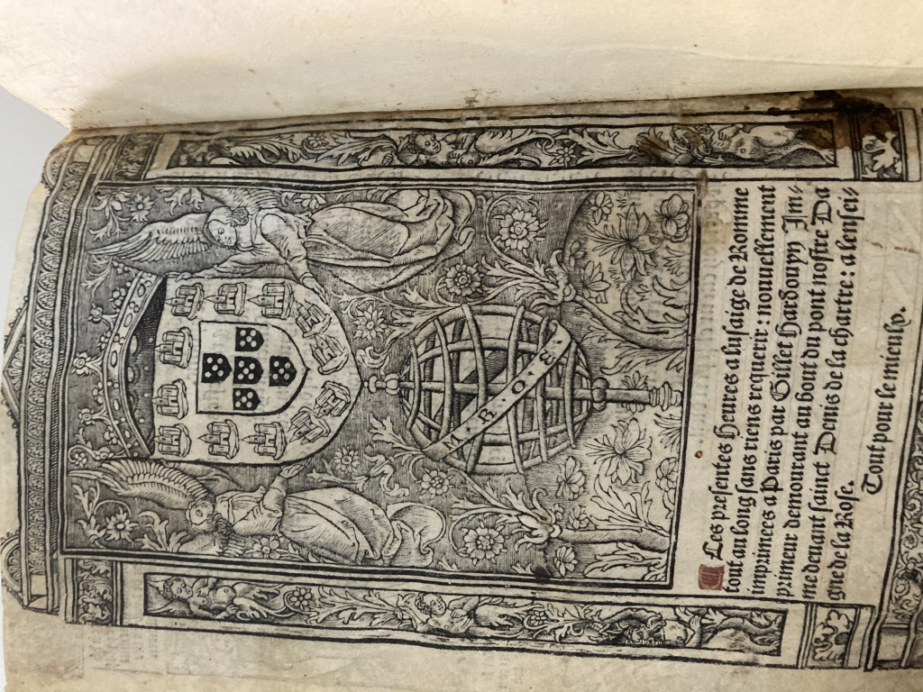 "Incunable livre d’heures à l’usage de Rome imprimé par Gillet Hardouin. Une vingtaine de gravures /enluminures."