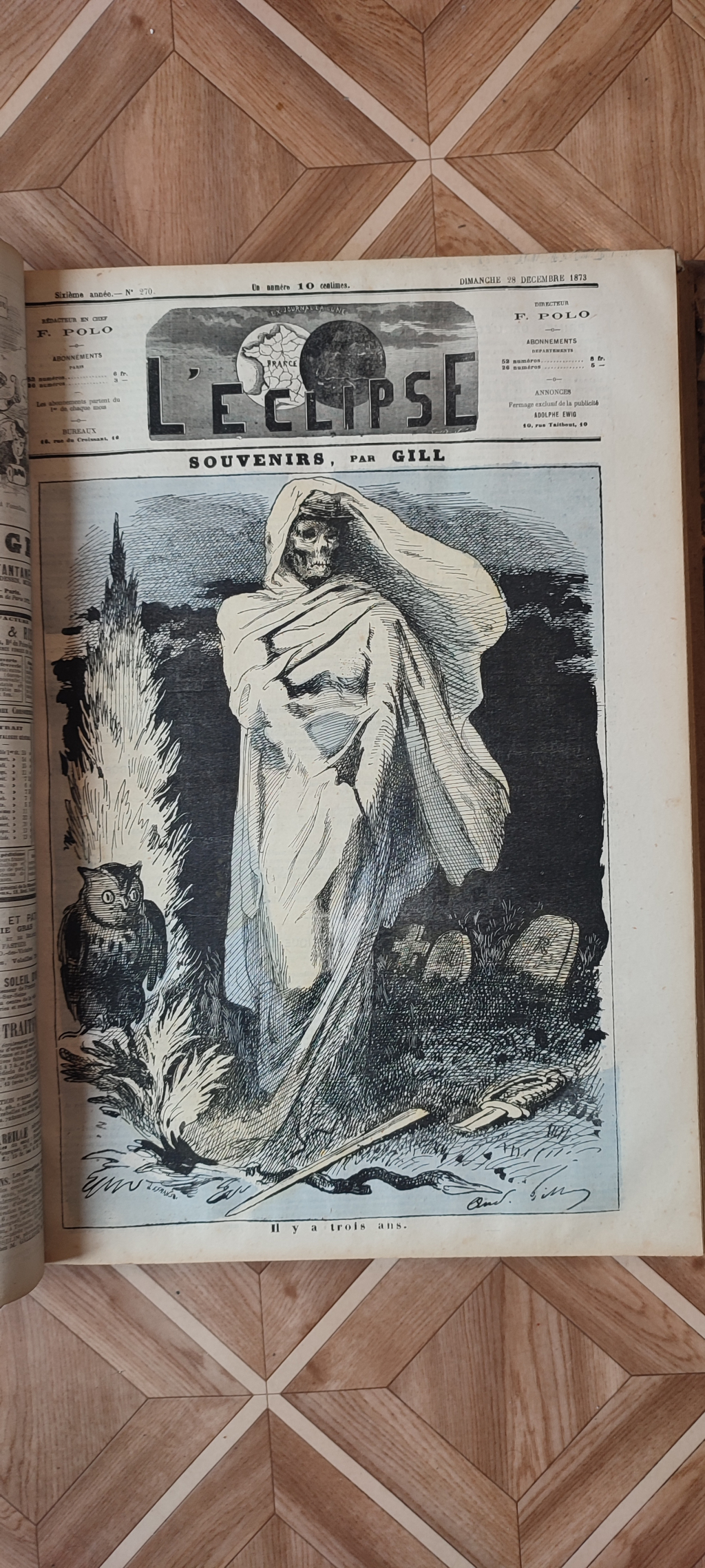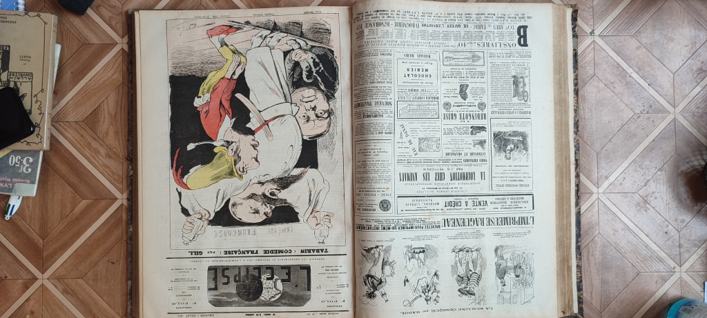 "L'éclipse 1873 Bel ouvrage remplie d illustrations de carricatures qui sont signées.. Le livre est en bon état les pages sont belles pas de déchirures ,la couverture est un peu usé par le temps mais reste correct"