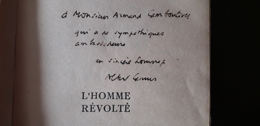 "L'auteur est Albert Camus. Le livre fait apparaître une dédicace signée de l'auteur"
