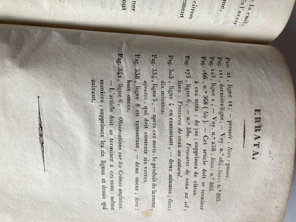 "1re édition, 1830, Imprimerie de P. Durand-Belle à Nîmes. Préface (XV pages), signature de l'auteur au recto du faux titre, 885 recettes numérotées, Table des recettes, Mise de table, Dictionnaire, page d'Errata. Très bon état, Ni notes ni déchirures, très rares rousseurs. Reliure moderne en bon état mais mal appropriée."