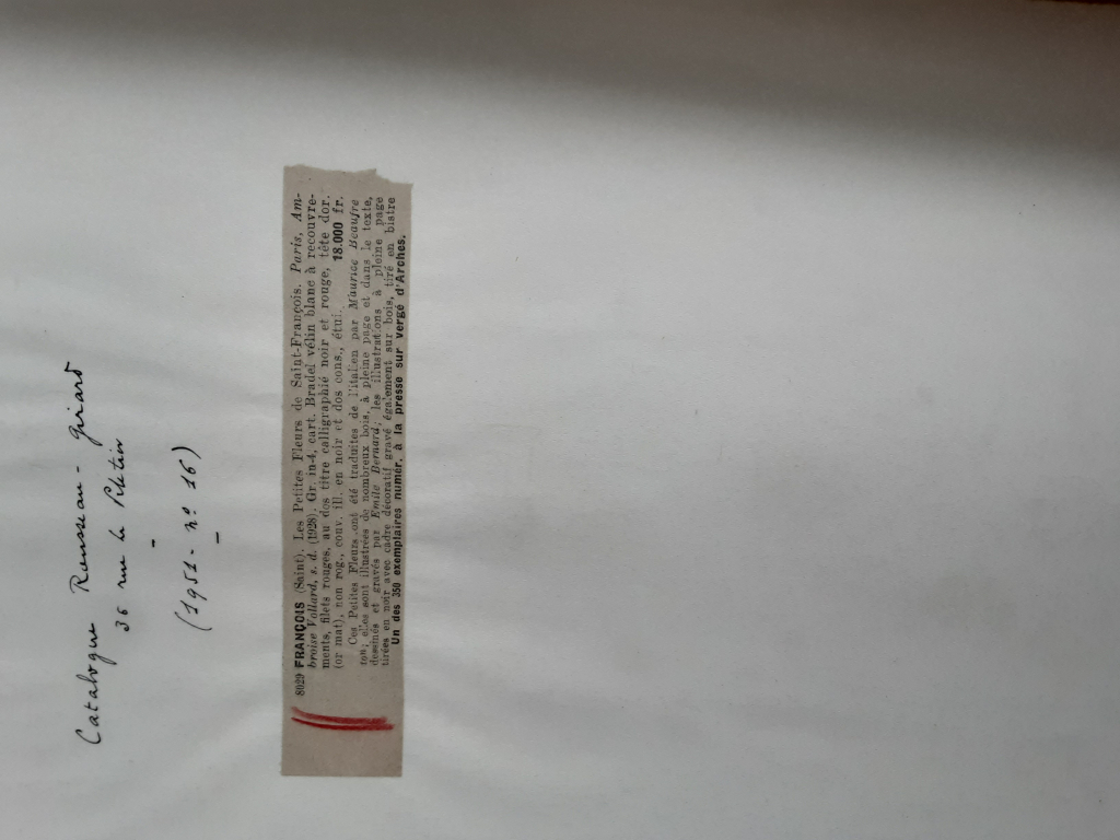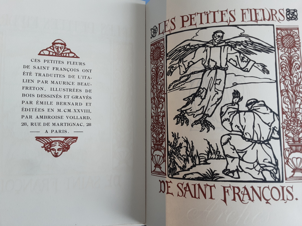 "Les petites fleurs de St François 1928 sous forme de feuillets gravés sous étui Ambroise Vollard éditeurs Excellent état Date 1928 Exemplaire numéroté 105 sur 350 tiré sur papier vergé d'arches"