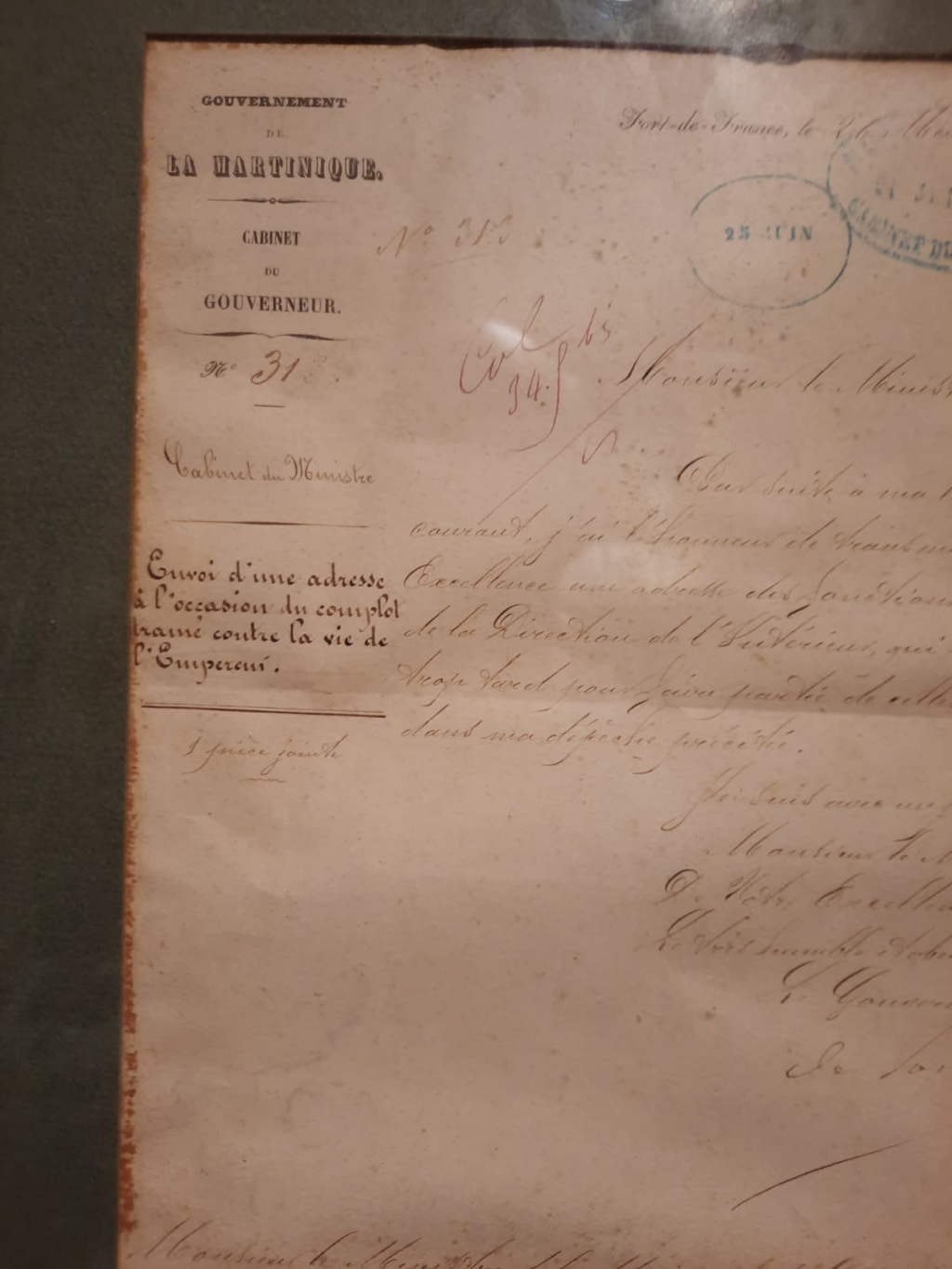 "Lettre du gouverneur ministre dénonçant un complot contre l'Empereur datant de 1870"