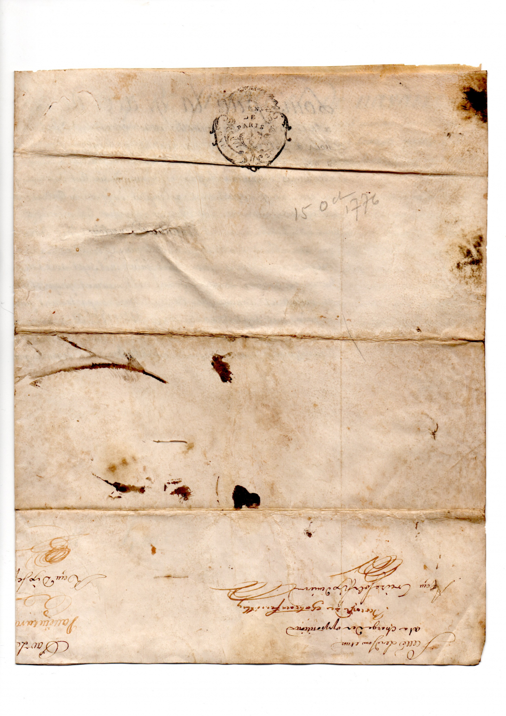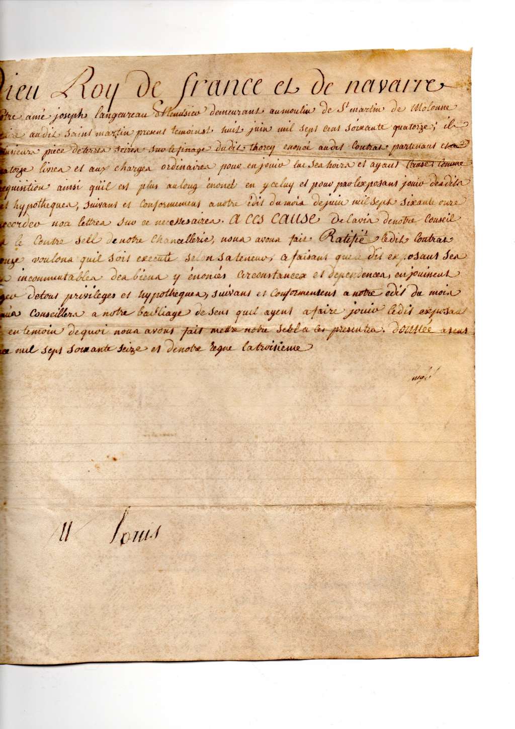 "Bonjour Monsieur, En pièces jointes, vous allez trouver les scans d'un acte que je pense être de LOUIS XVI et signé par ses soins, j'ai comparé la signature avec des documents en ligne, cela semble correspondre, et figure aussi la formule « car tel est notre plaisir », mais je n’ai pas vos compétences ... Touts mes excuses mais je n'ai pas trouvé la rubrique concernant ma demande. Si vous n'êtes pas concerné par ce genre de document, pouvez vous me dire à qui m'adresser, je vous en remercie pas avance. Souhaitant avoir une réponse de votre part si vous en trouvez le temps ... Cordialement. Patrice LEVILLAIN SOTTEVILLE LÈS ROUEN"
