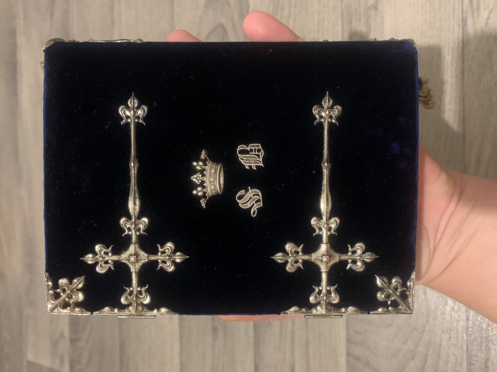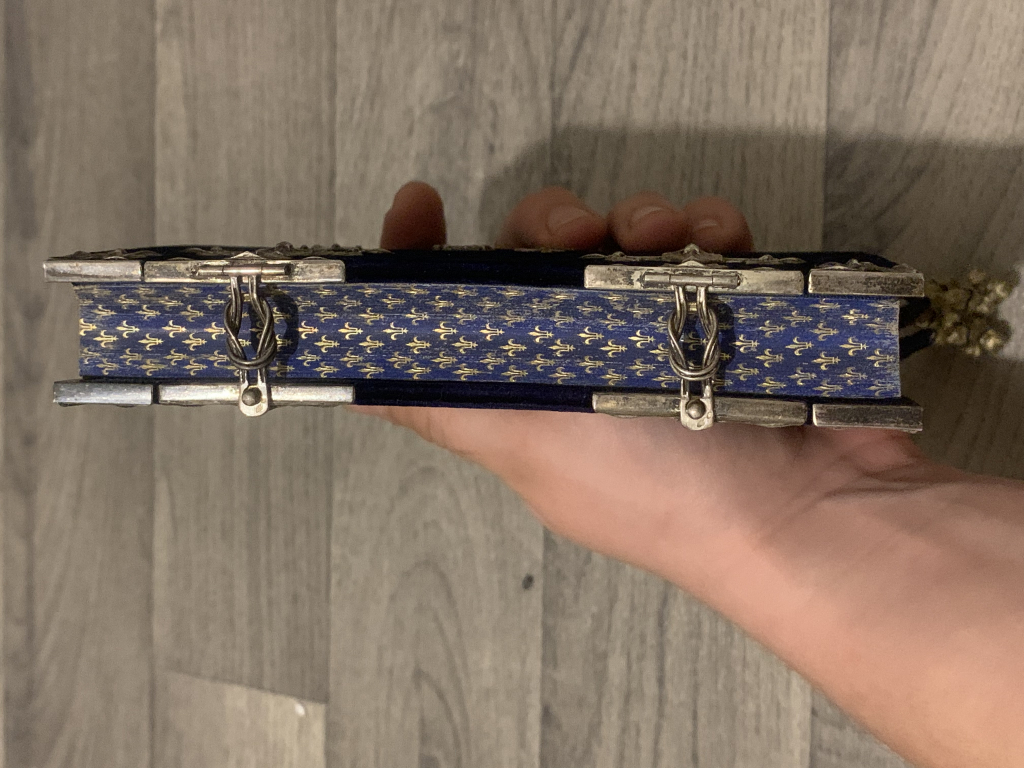 "Livre d’heure Engelmann et Graf 1846. décorations et fermoir sont en argent poincon tête de sanglier et poincon d orfèvrerie. Cadeau de mariage d’ Achille Raymond de BAILLEUL - marquis seigneur de Bertrimont avec Zaide de Solliers. Comporte 89 page et 17 illustrations."
