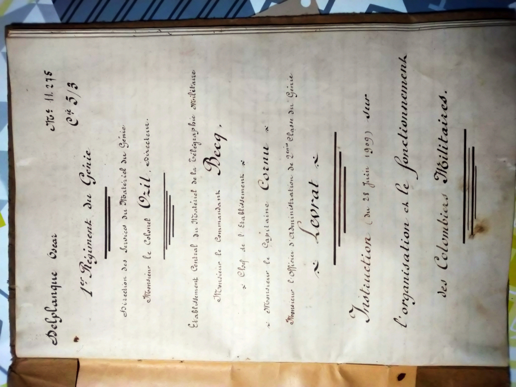 "manuscrit entierement ecrit a la main sur l organisation et le fonctionnement des colombiers militaires"
