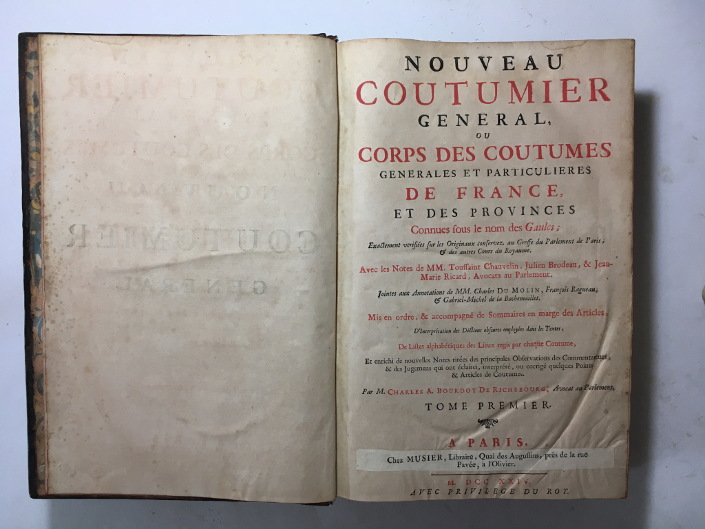 La première approche d’un professionnel du marché de l’art est visuelle. Nos équipes étudient dans un premier temps les différentes photographies de vues d’ensemble et de détails envoyées par le déposant avec sa demande : Nouveau coutumier général de France par Bourdot de Richemont.