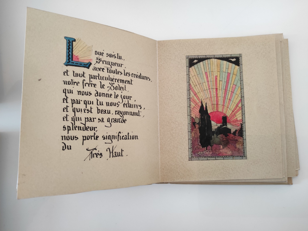 "10 exemplaires Fait à la main en 9 mai 1952 D'après le texte de St. François D'ASSISE"