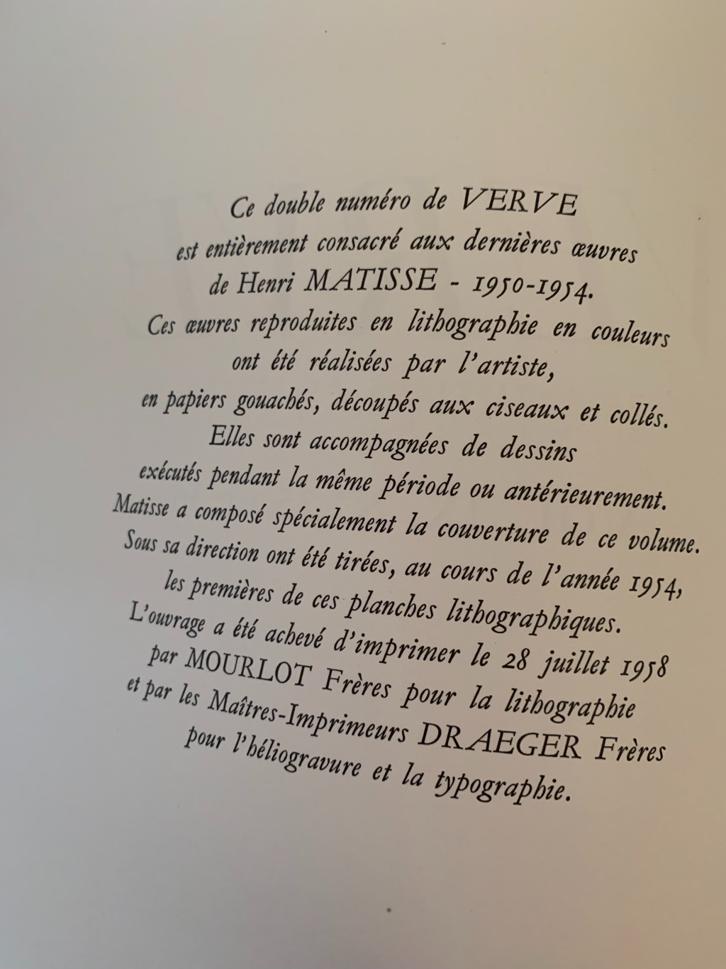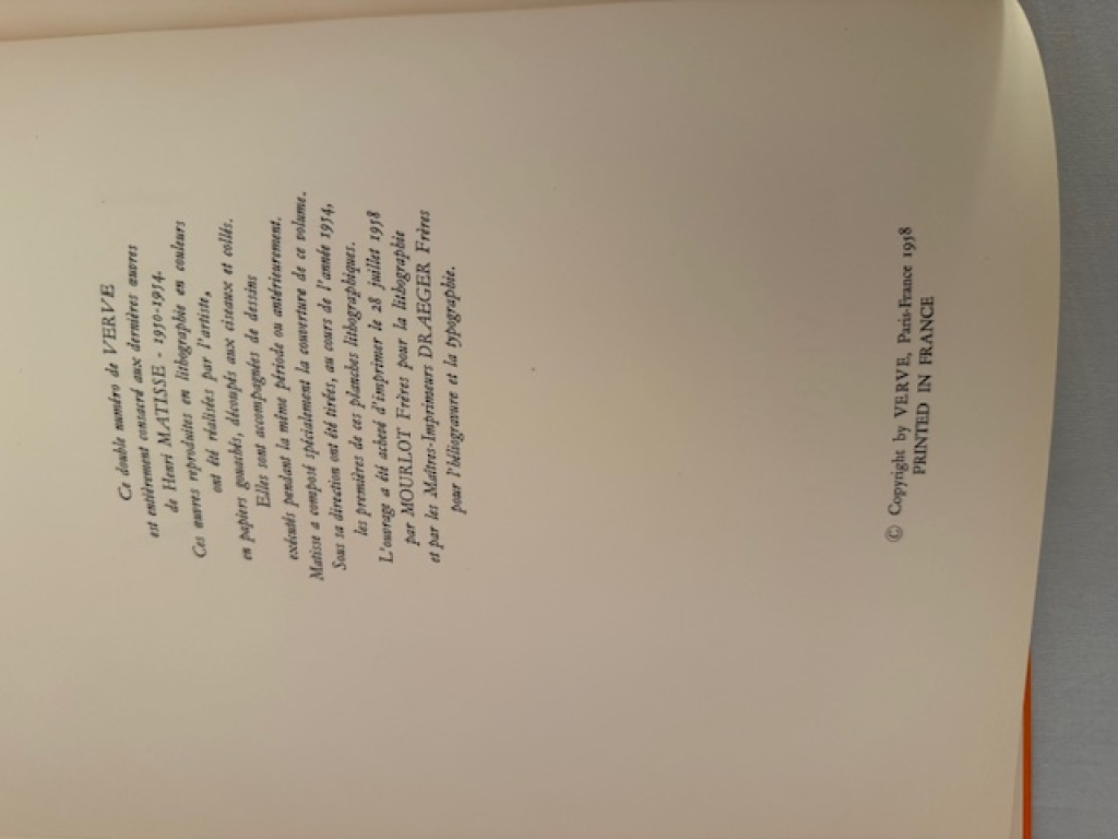 France estimations a reçu la demande d'estimation suivante intitulée par le déposant : VERVE Henri Matisse 1950-1954.
