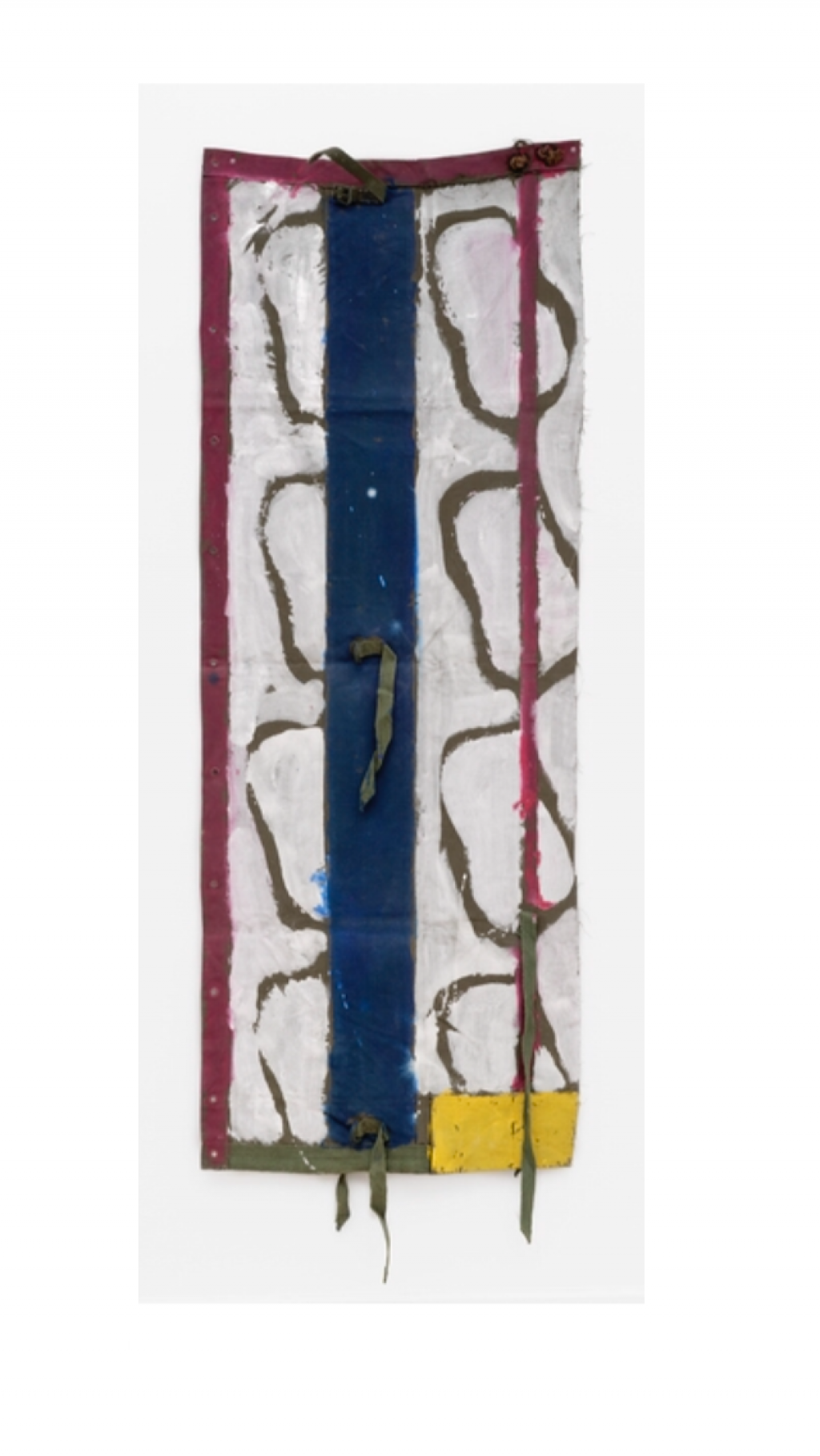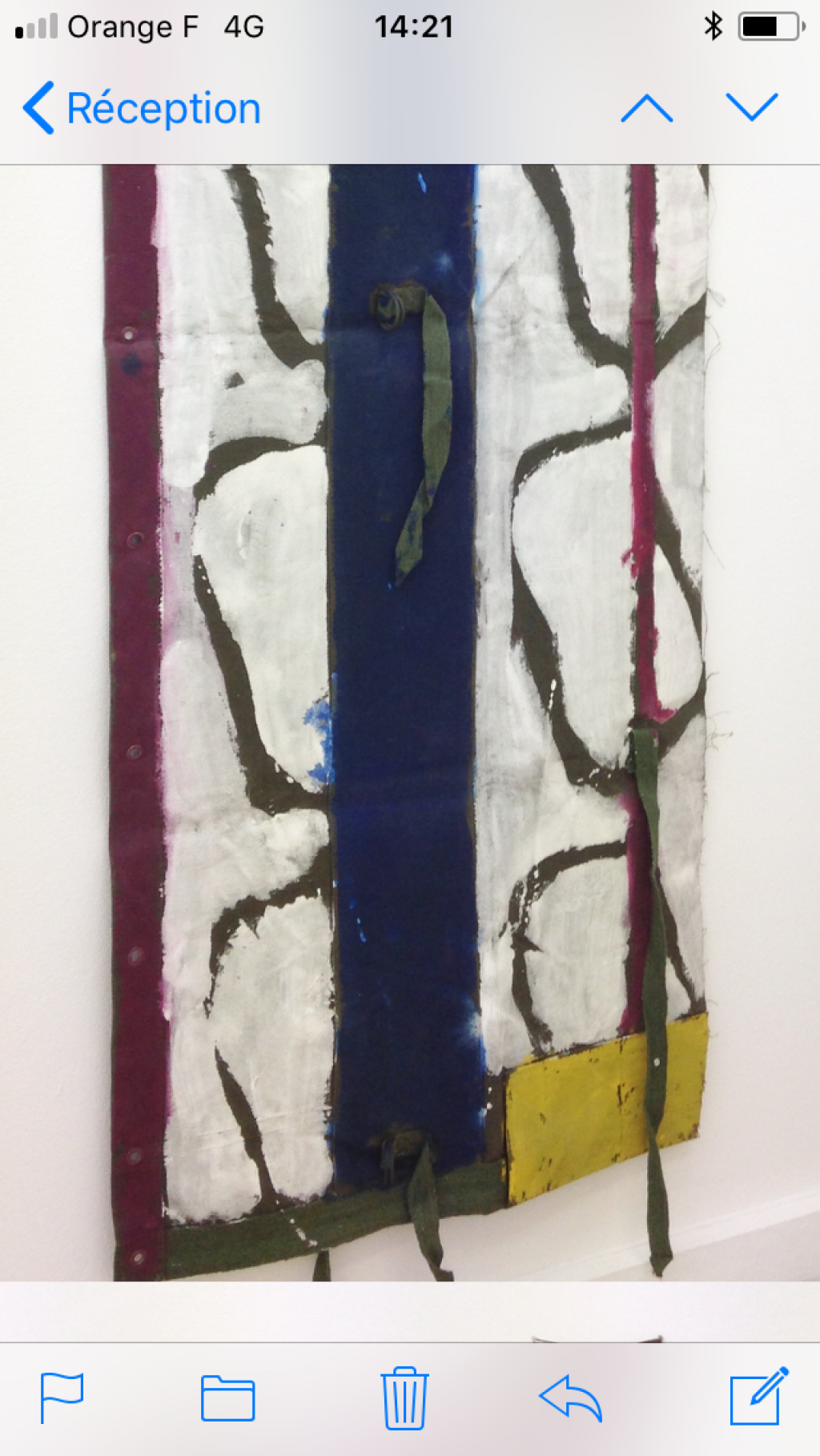France estimations a reçu la demande d'estimation suivante intitulée par le déposant : Acrylique sur bâche militaire de 2012 de Claude Viallat (hommage à Auguste Chabaud.