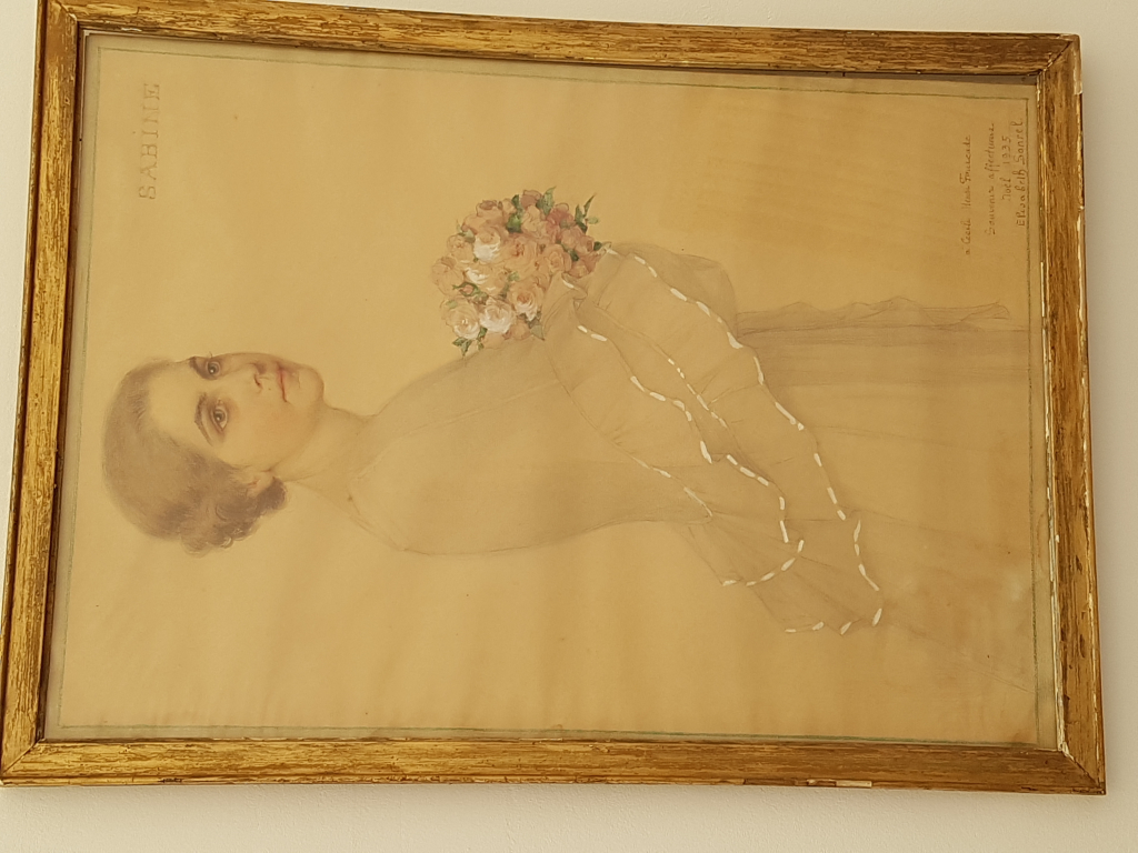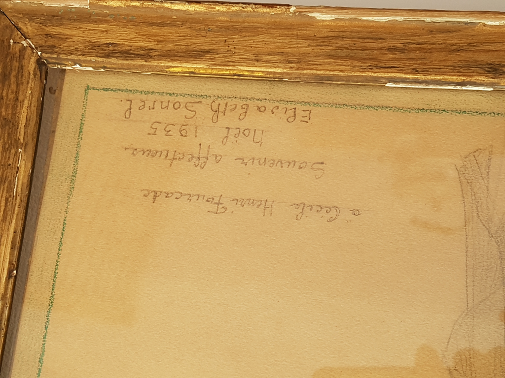 "Ce tableau a été réalisé par E.Sonrel vers 1935, ma mère qui avait à l'époque une quinzaine d'années, lui a servi de modèle. Je pense qu'il s'agit d'une esquisse de son tableau "soirée de mai', pour lequel ma mère a posé. Ma grand-mère et Elisabeth Sonrel vivaient à Sceaux et étaient amies, mes oncles et tantes ont également posés pour elle. Le tableau est en bon état."