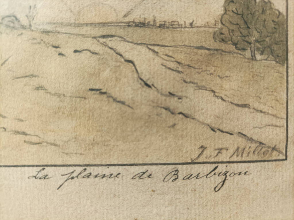 "La plaine de Barbizon,21 cm par 21 cm. Acheté à Paris début 1900 par un arrière oncle, Bartholomé Matharan riche homme d'affaires."