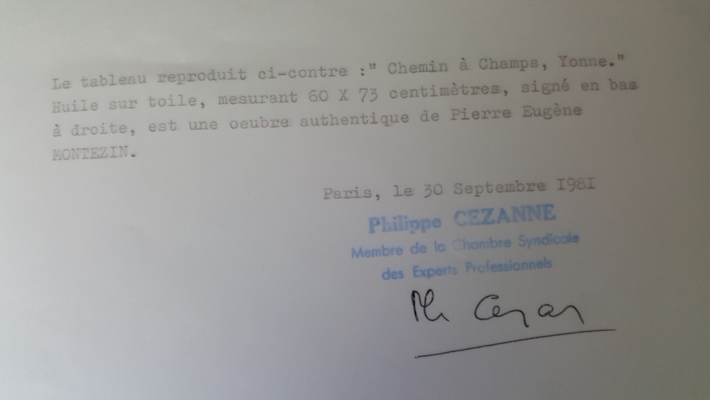 La première approche d’un professionnel du marché de l’art est visuelle. Nos équipes étudient dans un premier temps les différentes photographies de vues d’ensemble et de détails envoyées par le déposant avec sa demande : Chemin à Champs sur Yonne, Pierre-Eugène MONTEZIN.