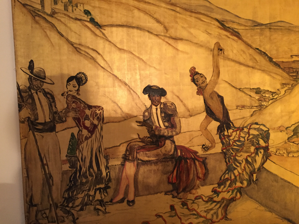 "Peinture sur feuille d'OR, support en bois, dim 240 x 220 cm. panneau signé"
