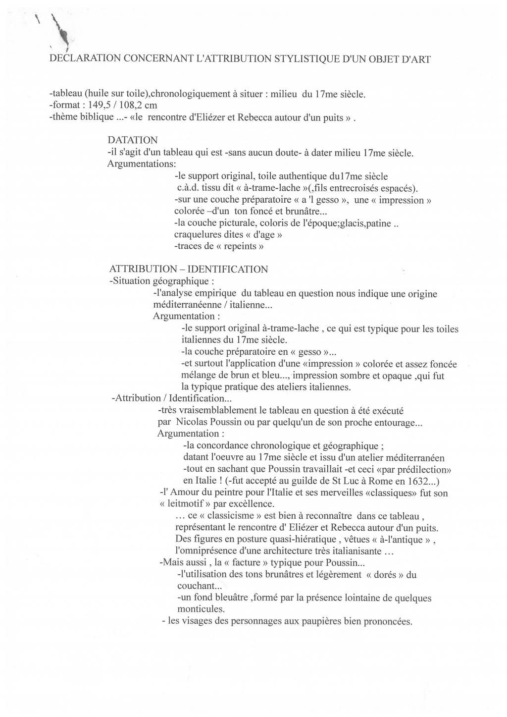 La première approche d’un professionnel du marché de l’art est visuelle. Nos équipes étudient dans un premier temps les différentes photographies de vues d’ensemble et de détails envoyées par le déposant avec sa demande : Eliézer et Rebecca autour d'un puits.