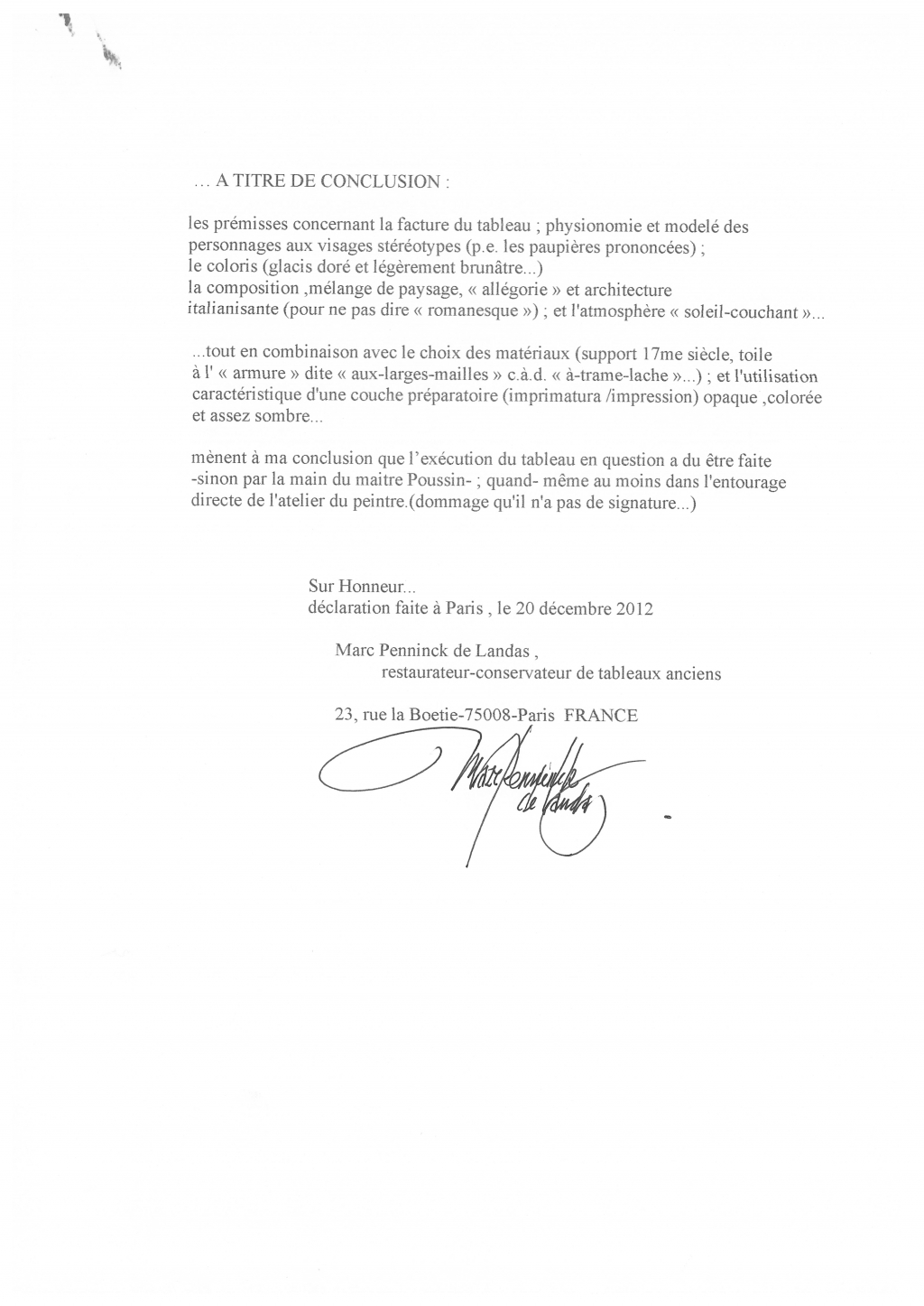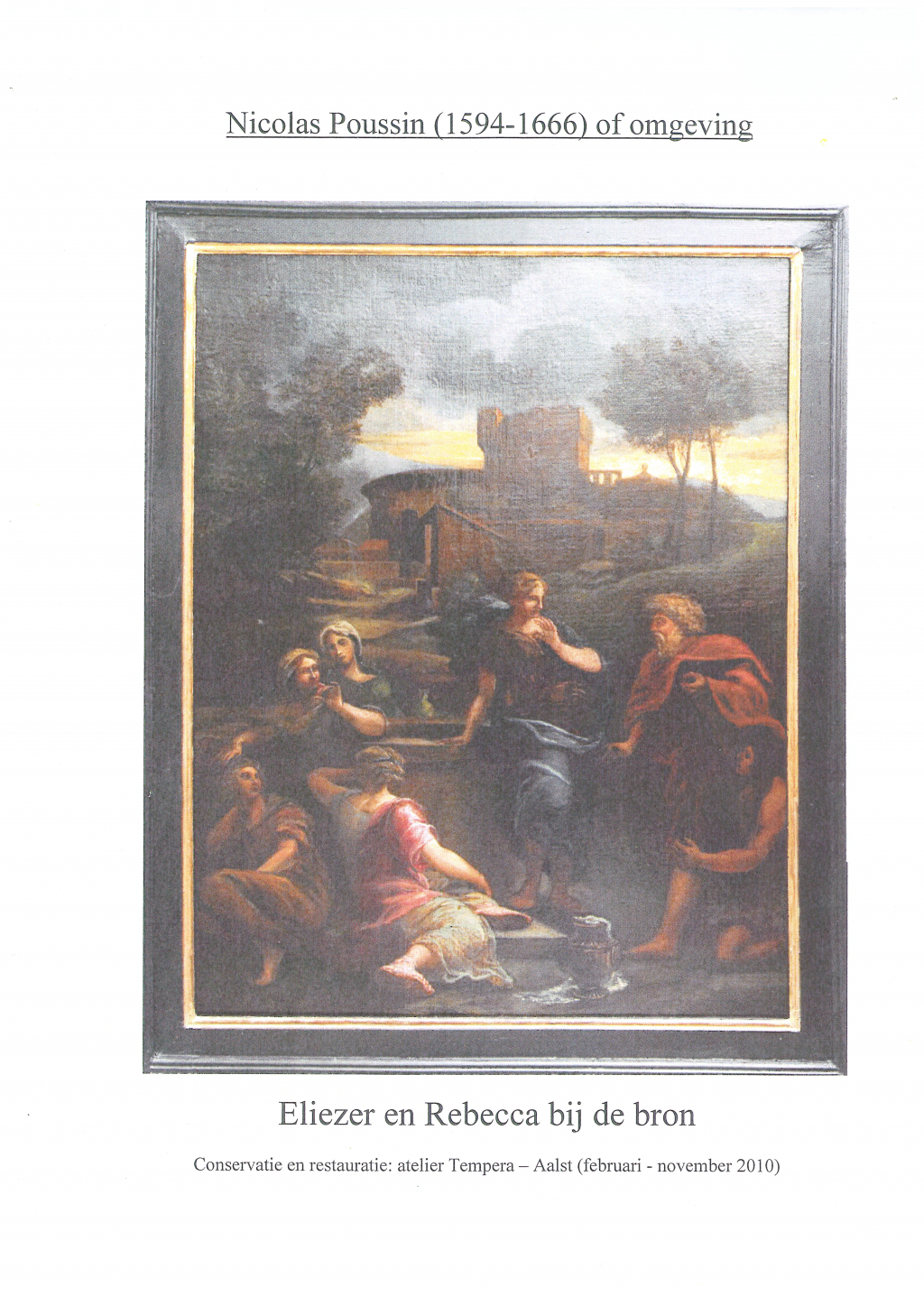 "- par Ncolas POUSSIN - toile authentique du 17me siècle - format du tableau : 149.5 x 108.2 - encadré - déclaration (2012) faite par Marc PENNINCK DE LANDAS, restaurateur conservateur - le tableau a été nettoyé professionnellement et dépouillé d'un ancien dédoublement"