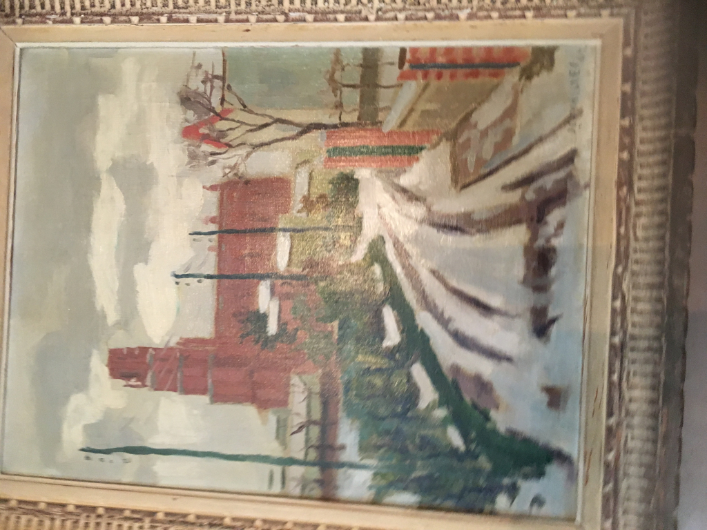 "Huile sur toile. Paysage enneigé avec au loin une usine. Le tableau ainsi que le cadre sont en excellent état."
