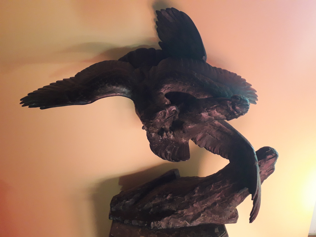 "Sculpture de MAXIMILIEN FIOT bronze a patine verte cire perdue combat d aigles signé M.F sur la terrasse cachet SUSSE FONDEURS sur l arrière H 75 cm L 80 cm"