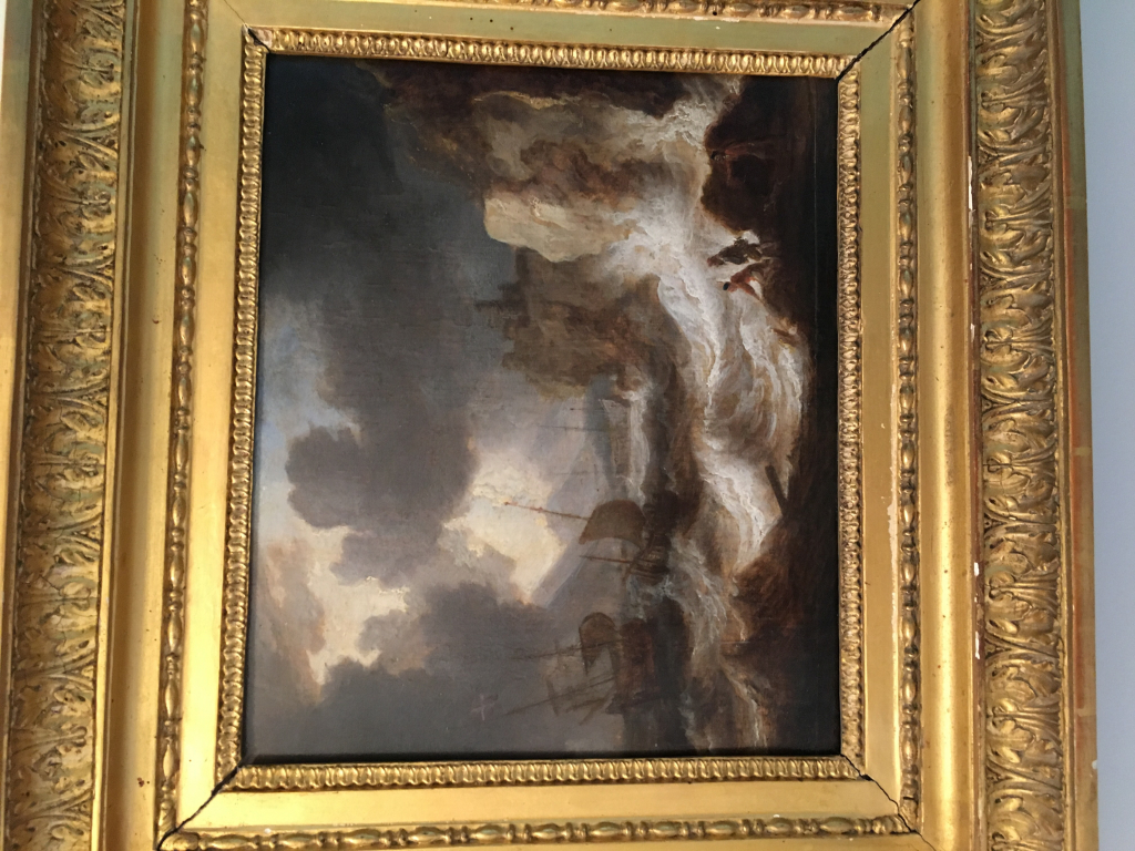 "Tempête toile 20/26 Peinture restaurée Expertisée en 1964 avec monogramme sur bois flotté ( que l’on ne voit pas âge l’œil Nu maintenant ?)"
