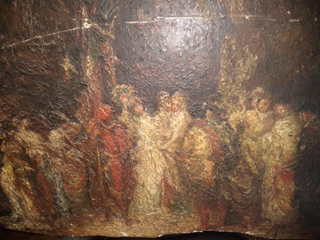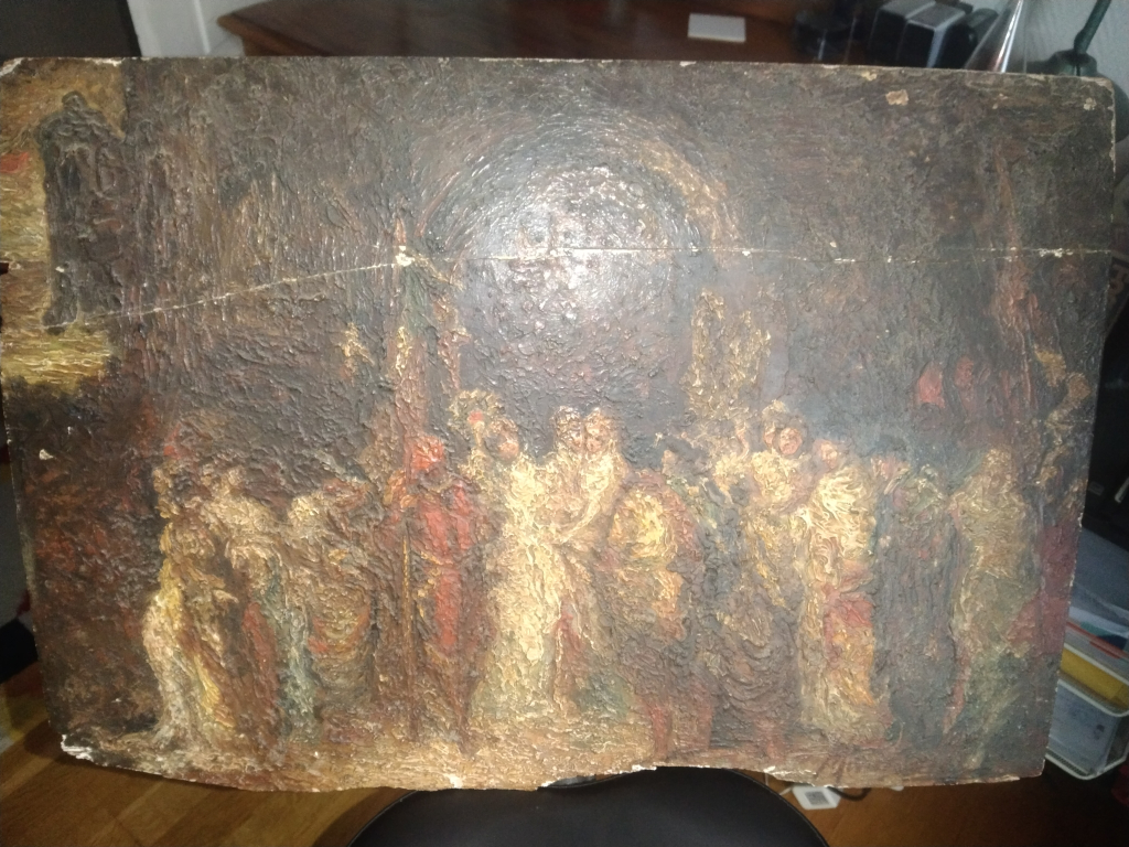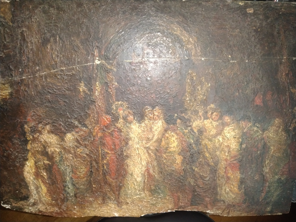 "Huile sur bois 52x37 de Adolphe monticelli 19 ème siècle.a restaurer .scene biblique."