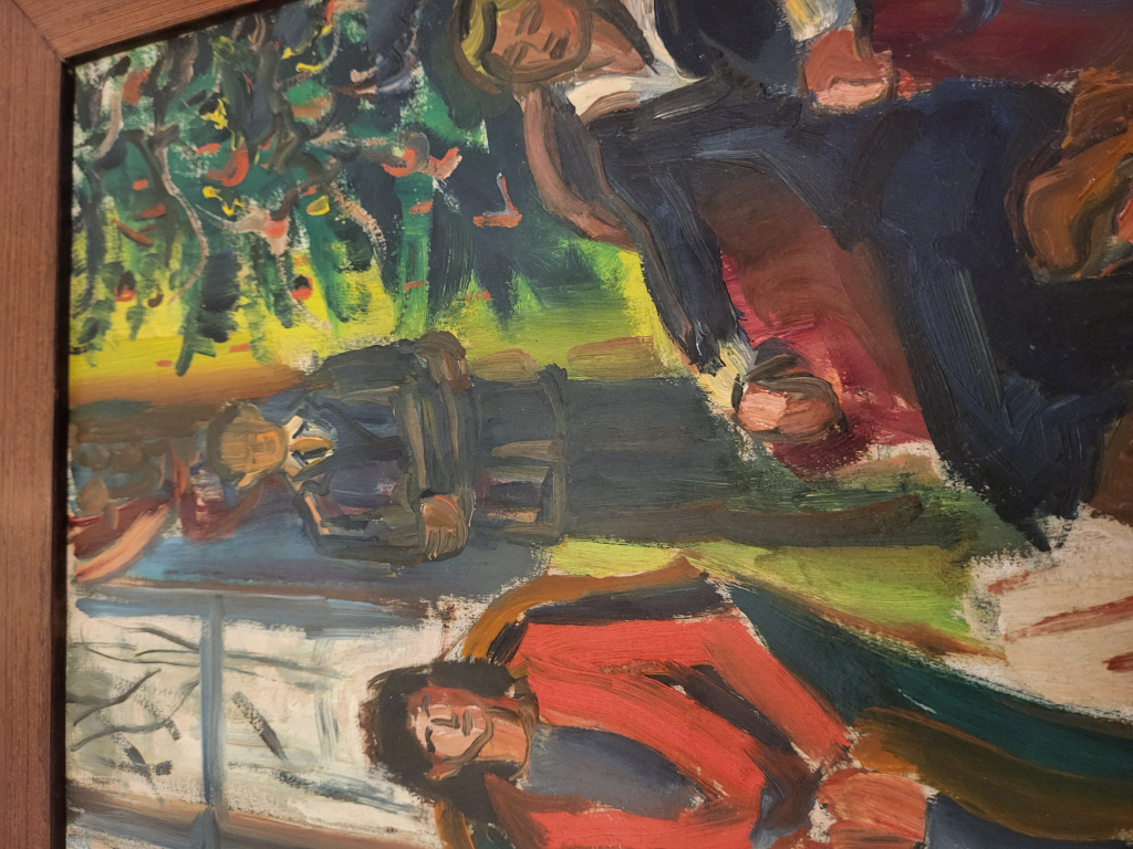 "ce tableau repris dans le livre reprenant l'oeuvre d'Hélène de Beauvoir publié à l'occasion de sa rétrospective par l'exparte Chantal Kinzley, a été offert àsa soeur Simone de Beaucoir, présente sur le tabelau de famille ! acheté a la rétrospectivee avec certificat de l'exparte il y a près de 30 ans à Paris, square Trousseau ; très bel encadrement en cerisier massif"