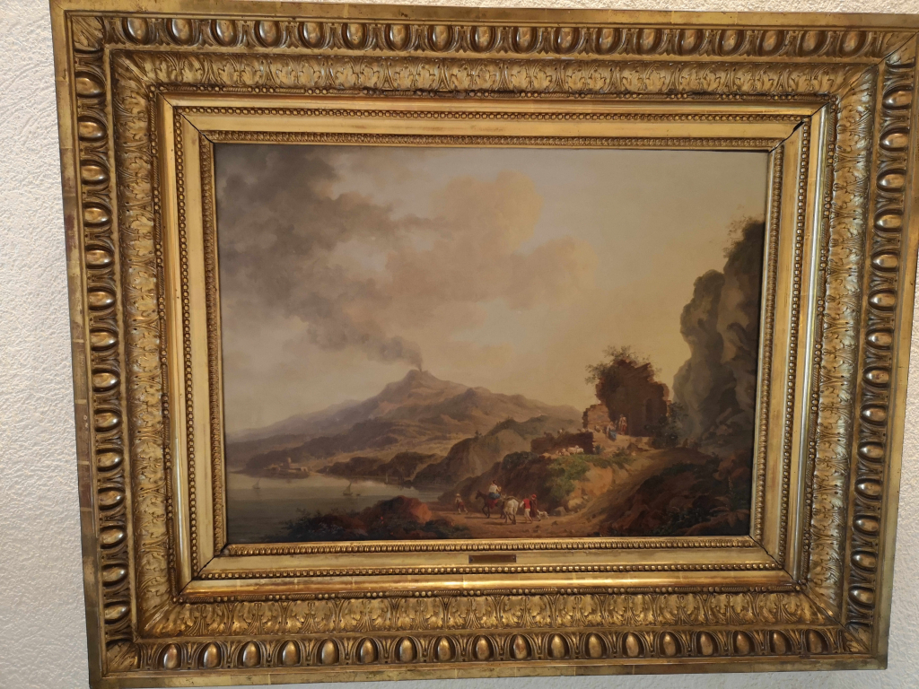 "paysage anime de sicile avec etna et bord de mer huile sur toile 58x80cm"