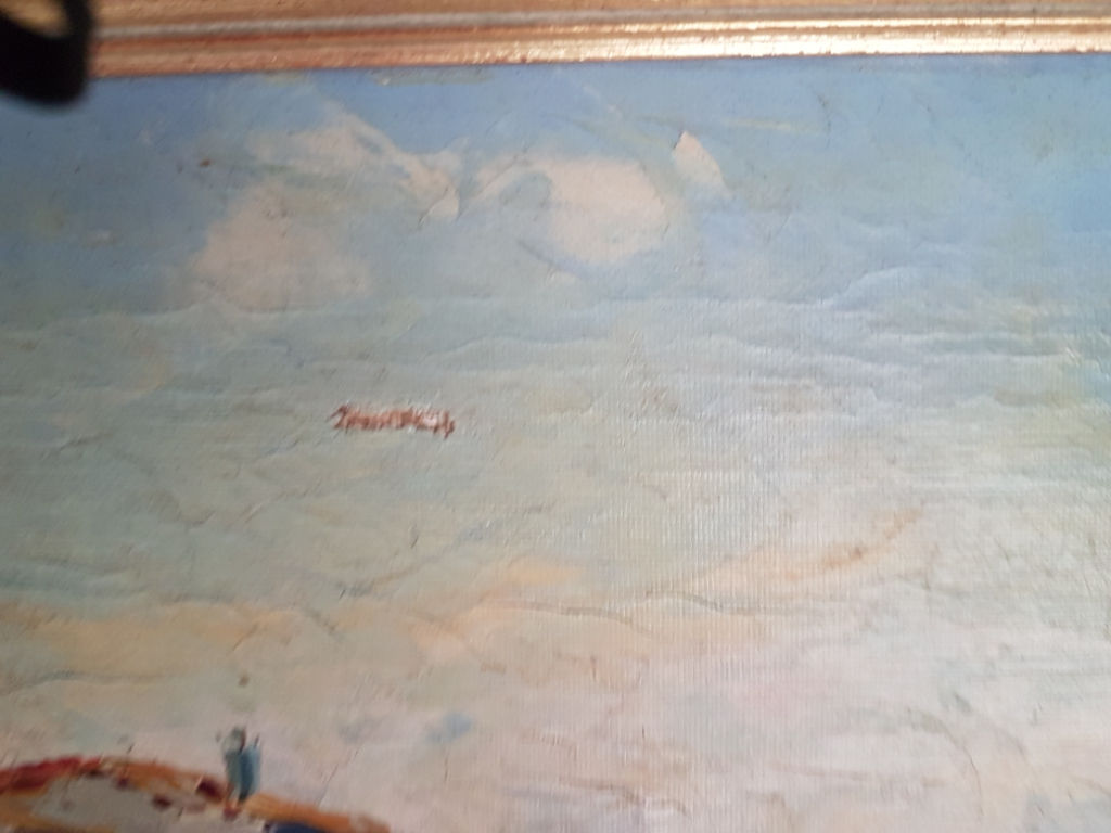 "peinture sur toile, 46x33 hors cadre. Signé V.MANAGO. Au dos, petite réparation qui semble correspondre à un "accident" relevé sur la face, au haut du cadre, dans le ciel. Sujet : presque identique au tableau "Le Port des Martigues" du même peintre : alors copie ? ou ébauche/brouillon du sujet par l'artiste. Merci de votre analyse. Cordialement"