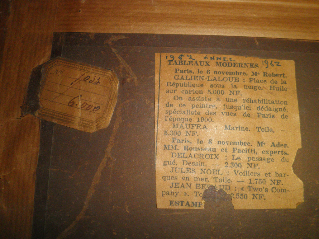 La première approche d’un professionnel du marché de l’art est visuelle. Nos équipes étudient dans un premier temps les différentes photographies de vues d’ensemble et de détails envoyées par le déposant avec sa demande : place de la republique sous la neige peinture huile sur carton.