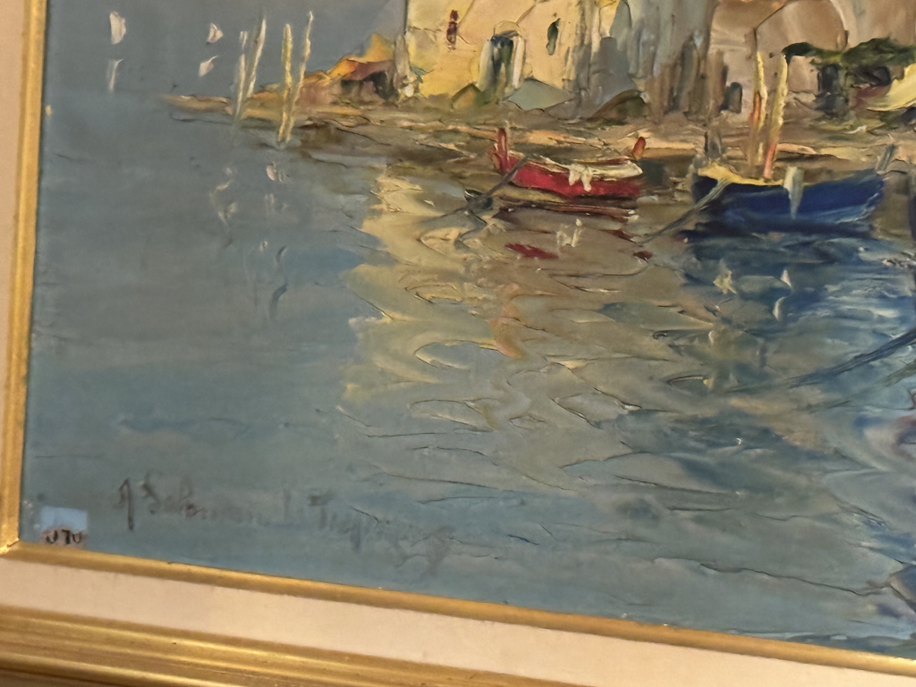 "Peinture à l’huile d un port méditerranéen signé début 20 eme siècle"