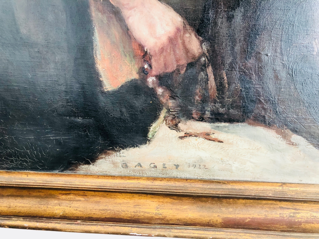 "Huile Procession bretonne _au vu des coiffes (région limitrophe bigoudenie) Peinture signe GAGEY .daté 1922 Taille :2 mètres sur 1metre 35 Bon état"