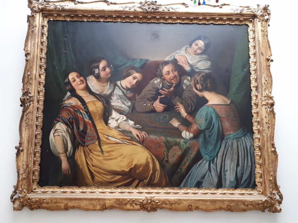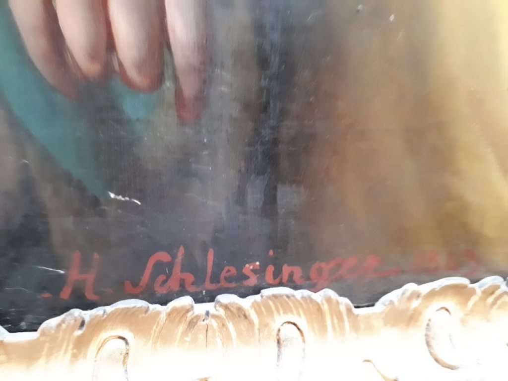 "1849,peinture sur toile du peintre Schlesinger Hauteur hors cadre de la toile approximative: 1,30 Longueur hors cadre de la toile approximative: 1,70 Profondeur: 12 cms avec cadre Tableau de Famille depuis à minima mes grands-parents donc dans les années fin XIXème début XXème A recu 3 petits accros durant toutes ces années, le cadre est en bon état. L'ensemble est donc en bon état"