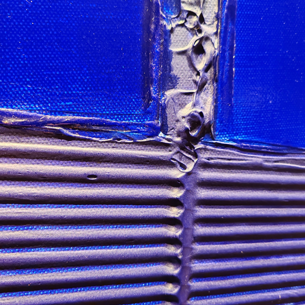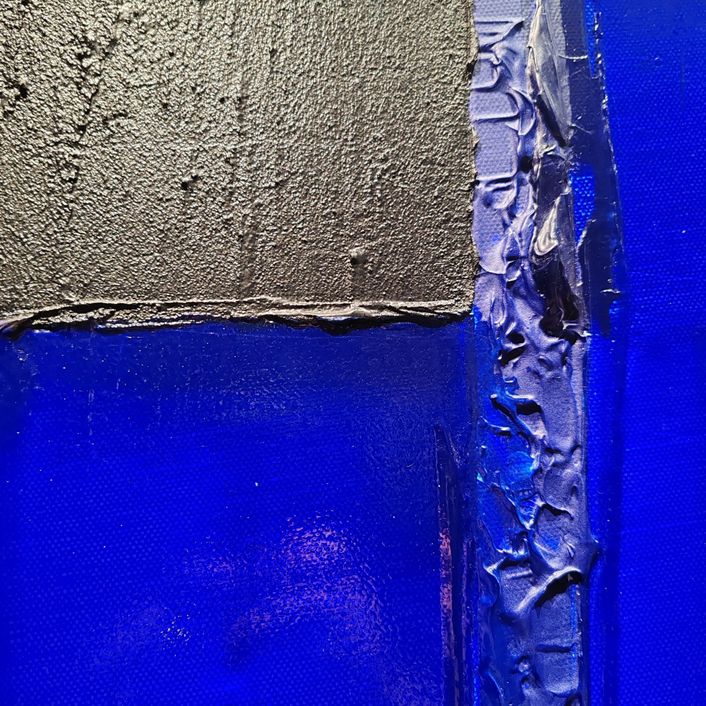 France estimations a reçu la demande d'estimation suivante intitulée par le déposant : Tableau abstrait bleu et noir de Jacques Pouchain 80x80.
