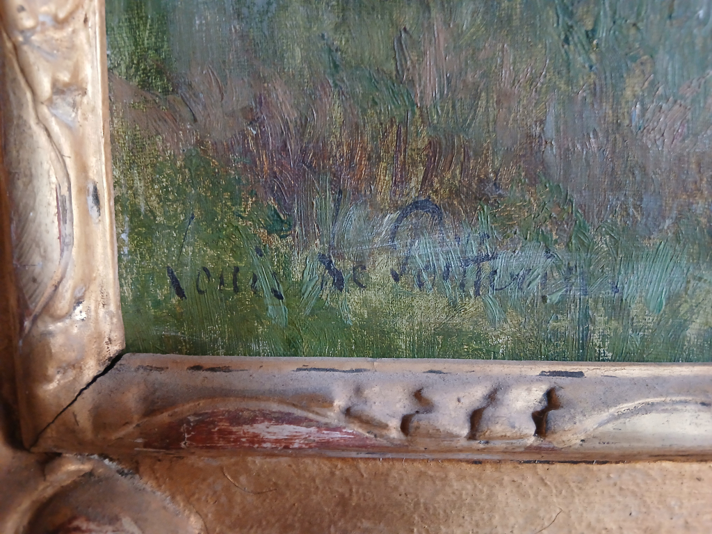 "tableau grand format 93 X 120 Du peintre Louis de Poittevin, mort en 1909. On peut trouver quelques unes de ses oeuvres dans les musees du Havre, de Rouen, etc.. ."