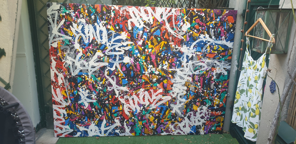 "C tableau ma étais offert en cadeau de mariage , il a appartenu à CRHISTOPHE MILAN qui est décédé depuis peu ( ancien agent et ami de JONONE ). C est l un des tableaux de sa collection privée . dimension : 1 m 50 hauteur . 2 .04 m longeur EXCELLENT ETAT . ANNEE 2013"