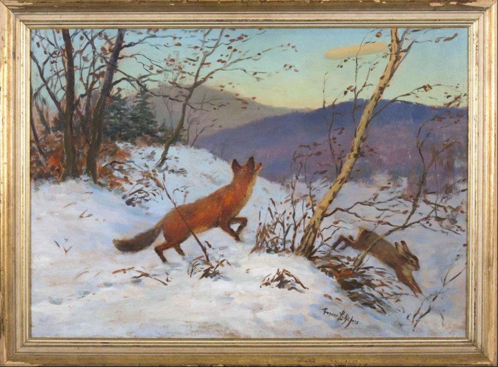 "Bonjour, pourriez vous me donner votre avis relativement à une huile sur carton environ 50x70 cm signée en bas vers la droite, supportant à l'arrièreau dos du carton peint une étiquette dactylographiée en Suédois "Vinterlandskap med hare attackered av fox" et sur un second carton recouvrant partiellement le carton peint une inscription au feutre "paysage au renard - école suédoise". La signature semble être celle de Bruno Liljfors. Cette oeuvre a été acquise en vente publique sans historique. Elle dispose d'un cadre moderne. Merci par avance. Bien cordialement."