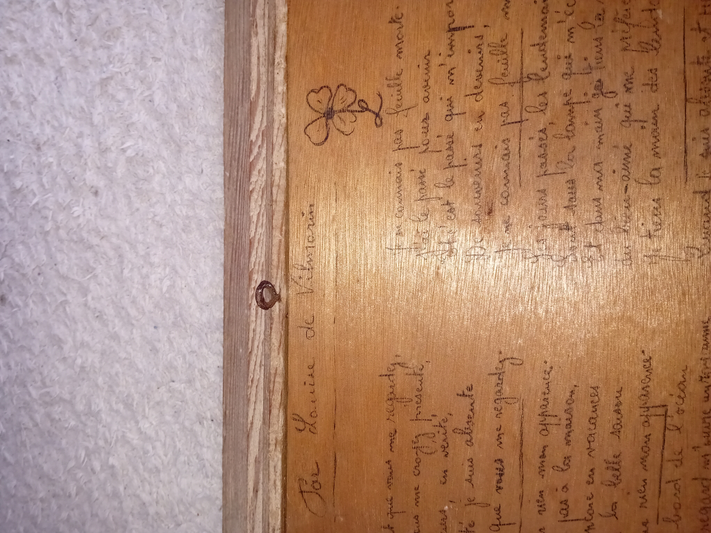 "Tableau peint sur bois par Louise de Vilmorin et poème gravé au dos Louise de Vilmorin fait partie d'une famille de grainetiers et botaniste"