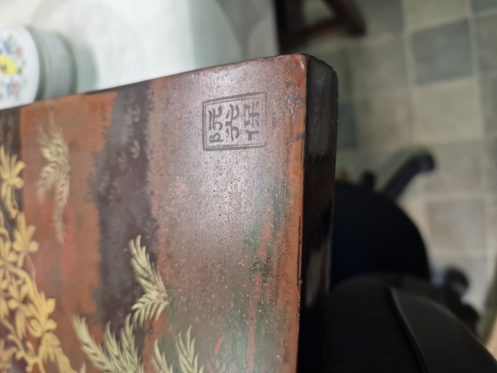 "Données techniques Type d’œuvre : Panneau en laque sur bois (ou contreplaqué) à décor doré et peint. Signature : Quang Bảo Nguyên (晃保元) — école vietnamienne. Dimensions : 69,5 × 49,5 cm (format moyen). État : Bon général, avec petites rayures et usures de surface (or légèrement effacé sur certaines zones). Datation probable : années 1950–1970 (style et patine typiques de la période post-Indochine)."
