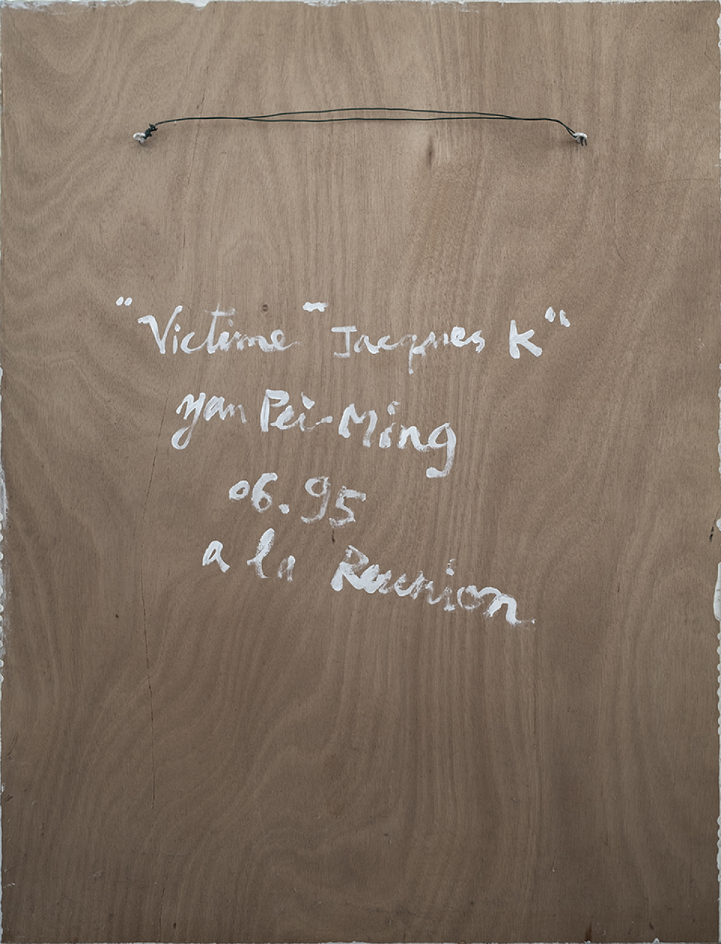 France estimations a reçu la demande d'estimation suivante intitulée par le déposant : Yan Peï-MING, "Jacques K, victime" huile sur bois, 1995.
