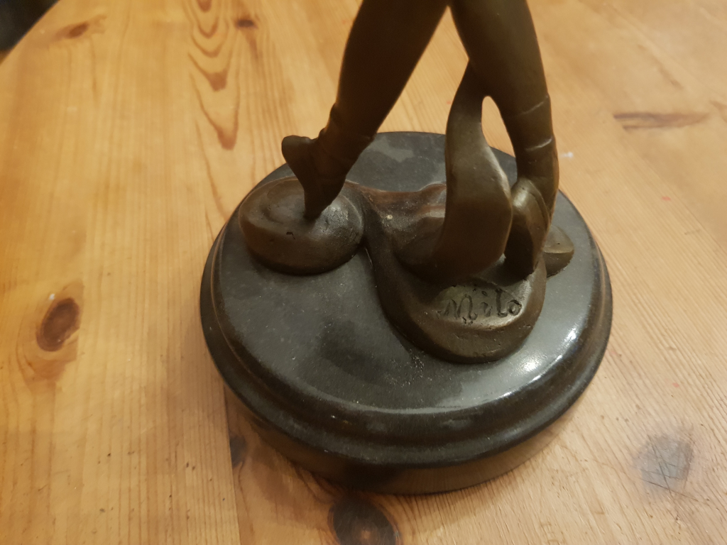 "Bonjour je suis en posseission de trois statuete signé Milo la plus grande fais 40 cm de haut, socle en marbre"