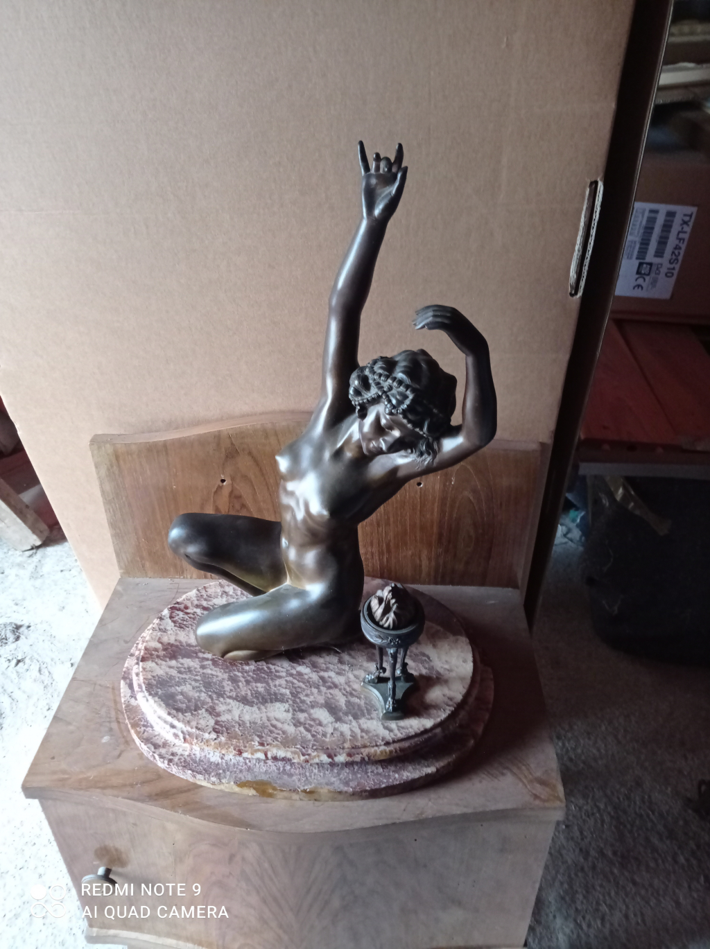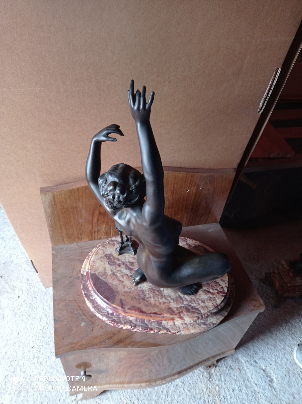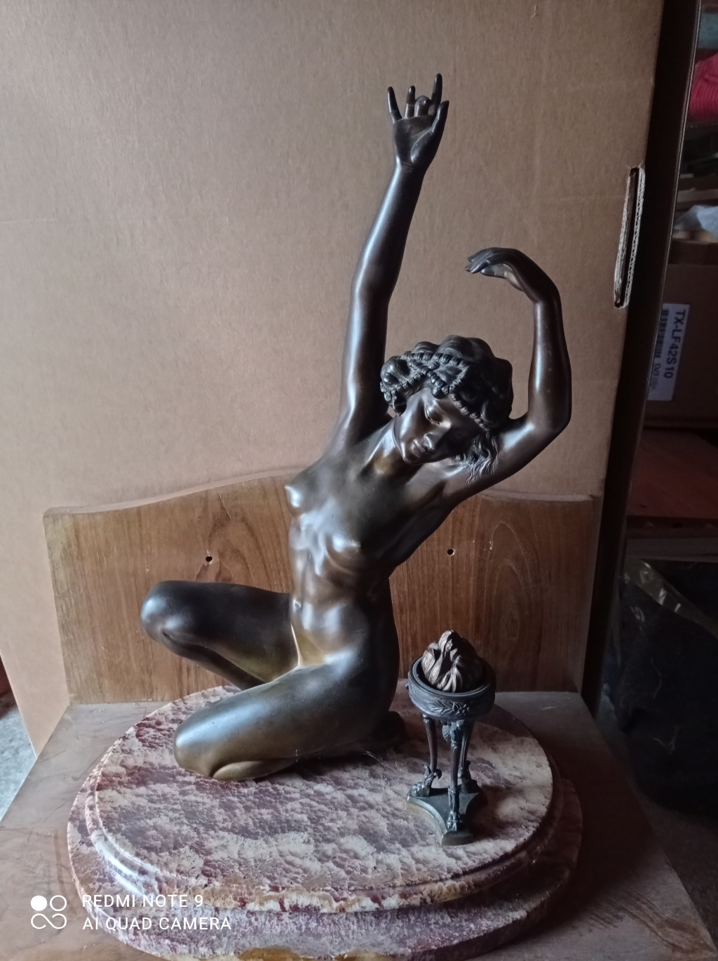 "Danseuse à la flamme,base ovale en onyx veiné rouge"