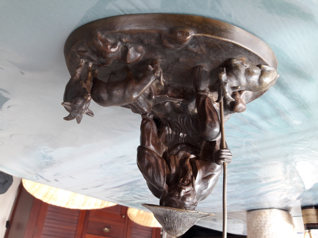 "Inscription au dos FONDERIE TONKINOISE HOANG-XUANLAN Objet lourd et creux à l'intérieur chapeau vissé, 2 pieds d'une des chèvres vissés Bon état"