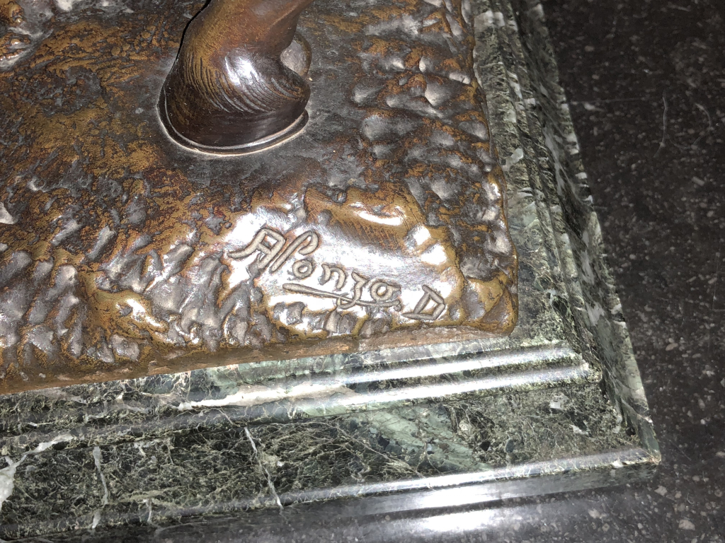 La première approche d’un professionnel du marché de l’art est visuelle. Nos équipes étudient dans un premier temps les différentes photographies de vues d’ensemble et de détails envoyées par le déposant avec sa demande : Bronze ALONZO, cavalier, 20éme siècle.
