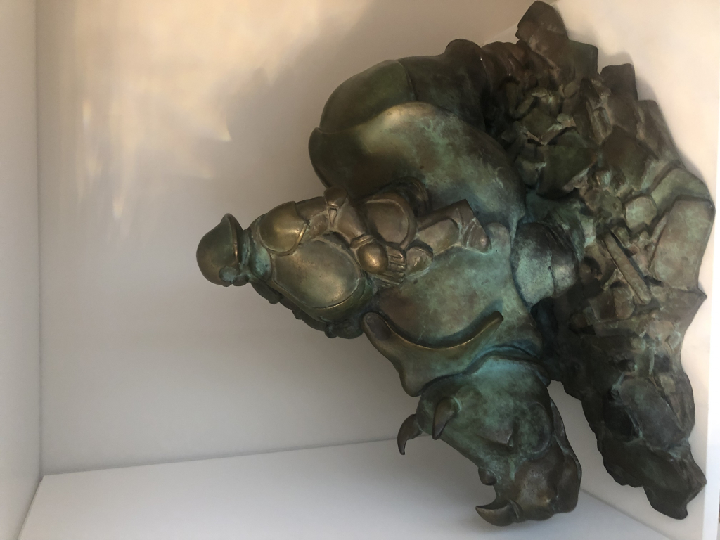 "Bon état 30 sur 40 cm 10 cm de hauteur Rhinocéros avec un cavalier dessus PH .SEENE numéroté 2/8 avec sceau de la fonderie d’art"