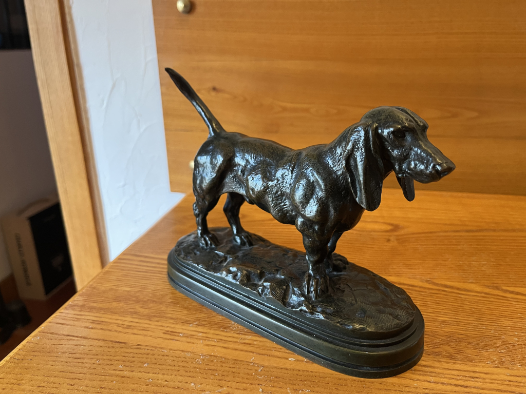 La première approche d’un professionnel du marché de l’art est visuelle. Nos équipes étudient dans un premier temps les différentes photographies de vues d’ensemble et de détails envoyées par le déposant avec sa demande : Bronze Barye chien 21x13 cms.