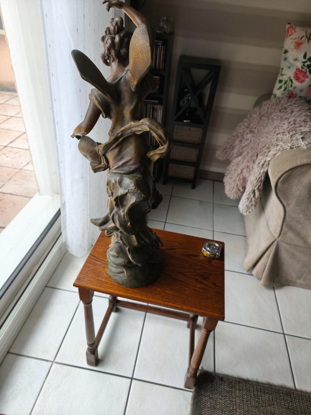 "Bronze femme ailée avec panier sur un rocher du projet wwwchérubin ailé avec panier et insecte sur le bras droit. + 3 colombes sur le socle"